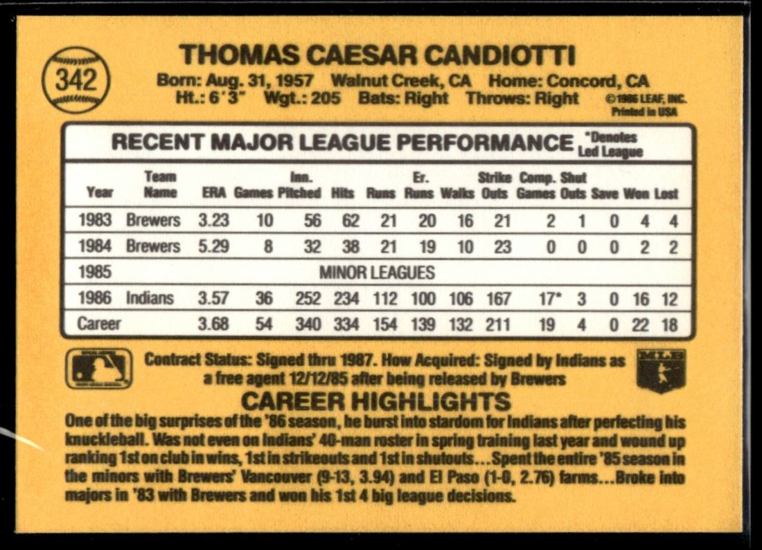 | 1987 Donruss #342 Tom Candiotti Cleveland Indians |