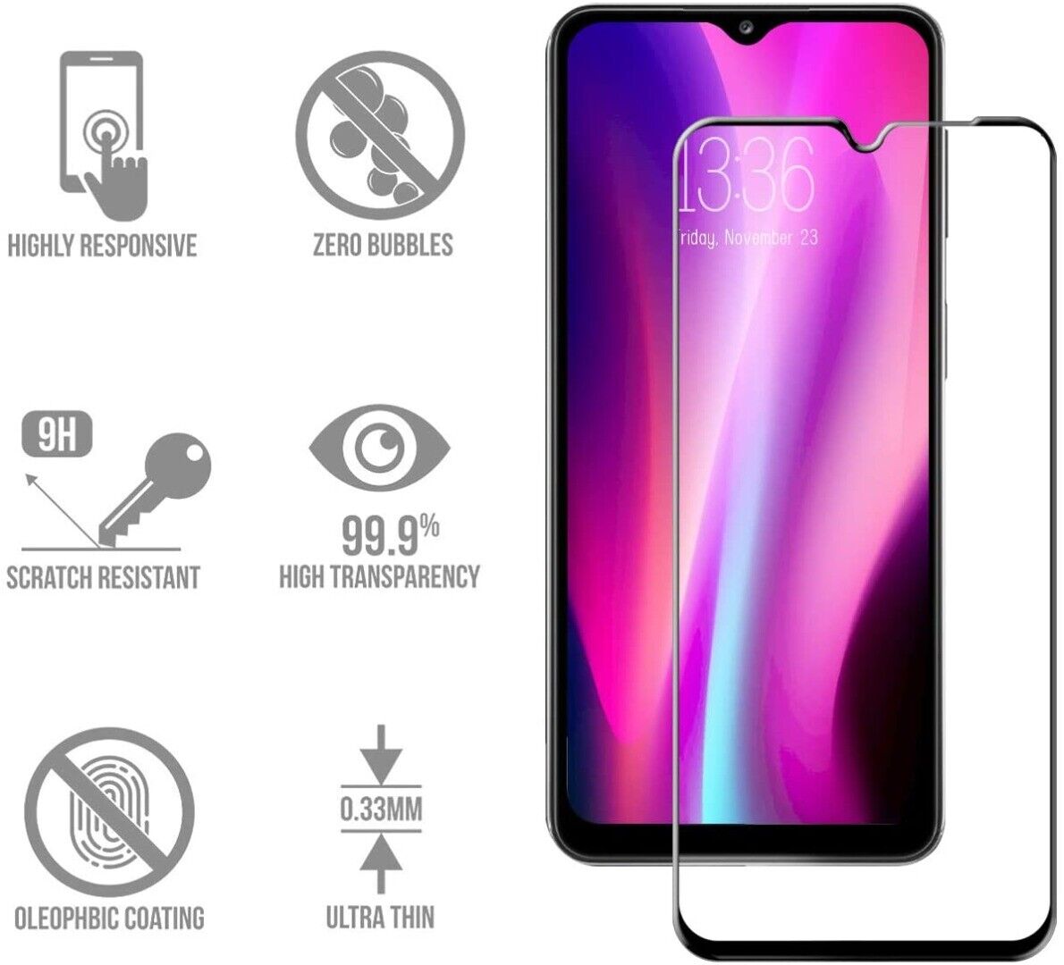 • 100% Genuine 0.33MM ultra thin Tempered Glass
