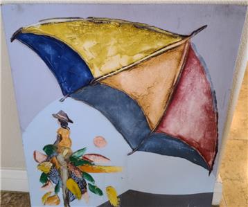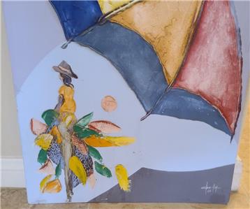 Offered here is this Wonderful Original Artwork Painting on Canvas Board. It is in good condition, structurally, with no holes or tears in the canvas. The painting was hanging in a covered outdoor patio, so it was not directly exposed to rain or sun, but it was exposed to the elements in some degree, and therefore needs to be cleaned at the very least. There are not many stains on the front of the painting, thankfully, but there are some on the back of the canvas board that it is painted on. The colors in the painting are still very rich and vibrant, and the image is a very nice one. The painting is signed and dated ‘86. It is 20” wide, and 24” long. It is a beautiful original painting in need of some TLC that would be a nice addition to your artwork collection.