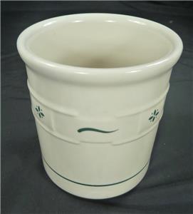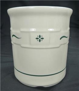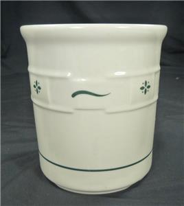 Longaberger Pottery Woven Traditions Heritage Green Utensil Crock. Measures 5 inches diameter and 5.5 inches high. Excellent condition.