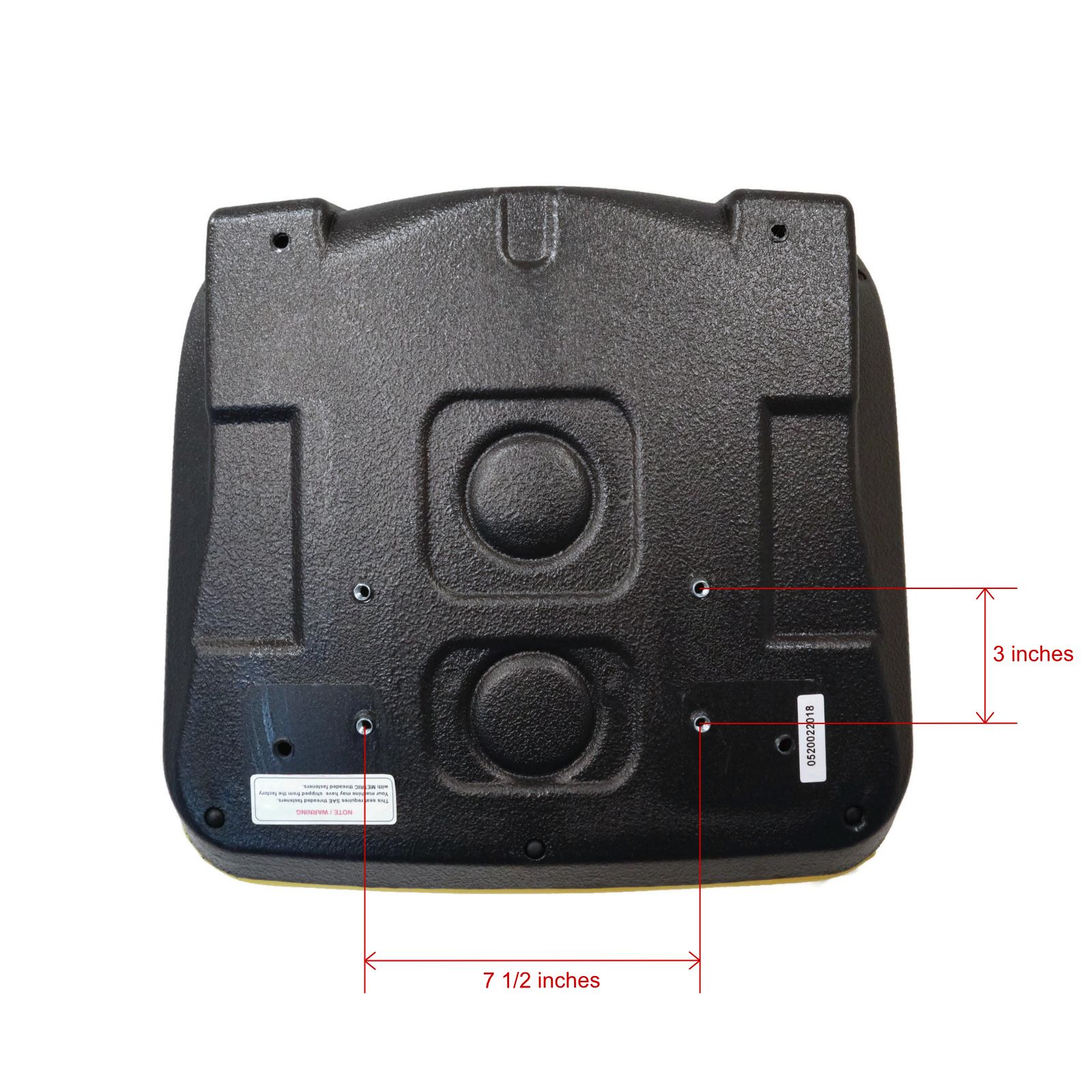 • Designed to fit a standard 7.5" (W) x 3" (D) bolt pattern. Measure side-to-side (Width) and front-to-back (Depth) for compatibility. Always measure from the center of each bolt hole to ensure a perfect fit and hassle-free installation. This seat requires standard 5/16"-18 UNC RH thread bolts for mounting (NOT INCLUDED). Applications with pivot rods may need a bracket (NOT INCLUDED). The original seat switch may not work for this seat. This seat does NOT have a drain hole