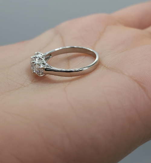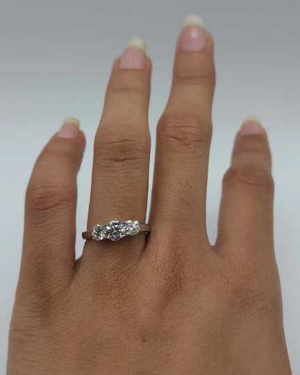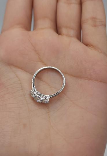 This is a beautiful 3 stone Lab Grown diamond ring. It is set in real solid 14Kt Gold. You can choose if you want 14Kt White Gold, 14Kt Yellow Gold or 14Kt Rose Gold.