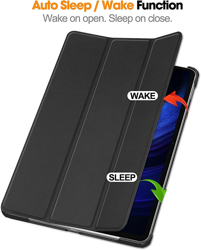 - Durch den eingebauten magnetischen Streifen wird beim Öffnen/Schließen der Hülle der Ruhezustand automatisch aktiviert/deaktiviert, um Strom zu sparen.