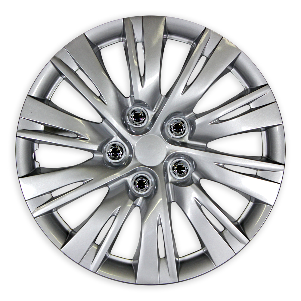 - This set of 4 wheel covers is perfectly designed to fit your Toyota Camry and easily installs over your existing factory steel wheels in minutes! These wheel covers are constructed from durable, automotive grade plastic and feature an attractive silver finish for a custom look