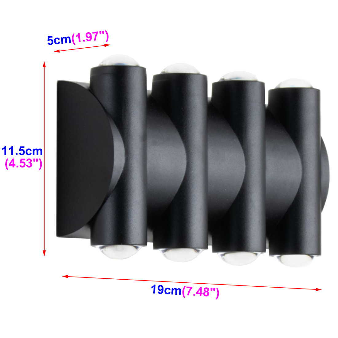 8W:19cm/7.48"x5cm/1.97"x11.5cm/4.53";