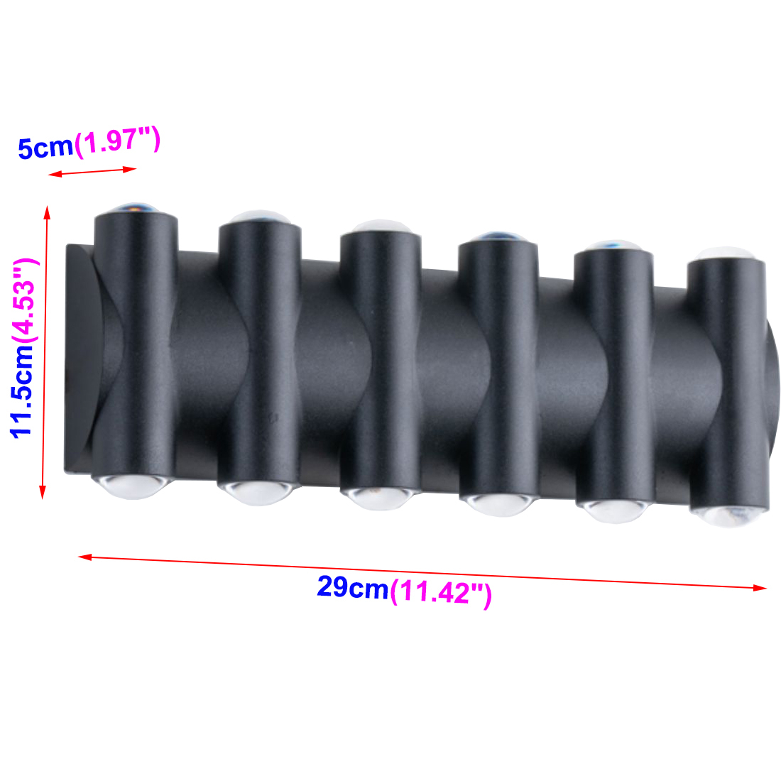 12W:29cm/11.42"x5cm/1.97"x11.5cm/4.53";
