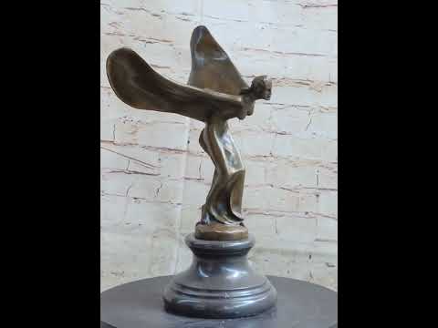 The meticulous craftsmanship of the sculpture allows for the intricate portrayal of the woman's flowing fabric wings, adding a sense of dynamic energy and serenity to the overall composition. The use of the lost-wax casting method enables the artist to capture every delicate fold and contour of the fabric, lending a lifelike quality to the sculpture that enhances its visual appeal. With the rich brown patina tarnish further highlighting the sculpture's exquisite details, this piece stands as a testament to the artist's dedication to both form and expression, creating a captivating representation of otherworldly beauty and grace.