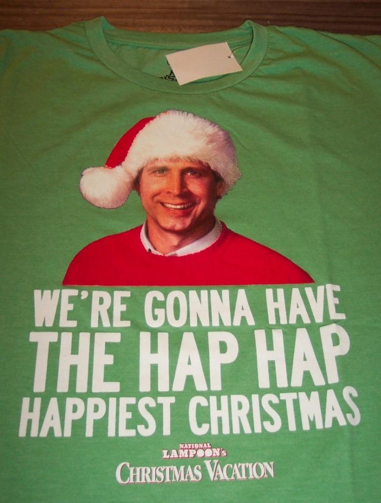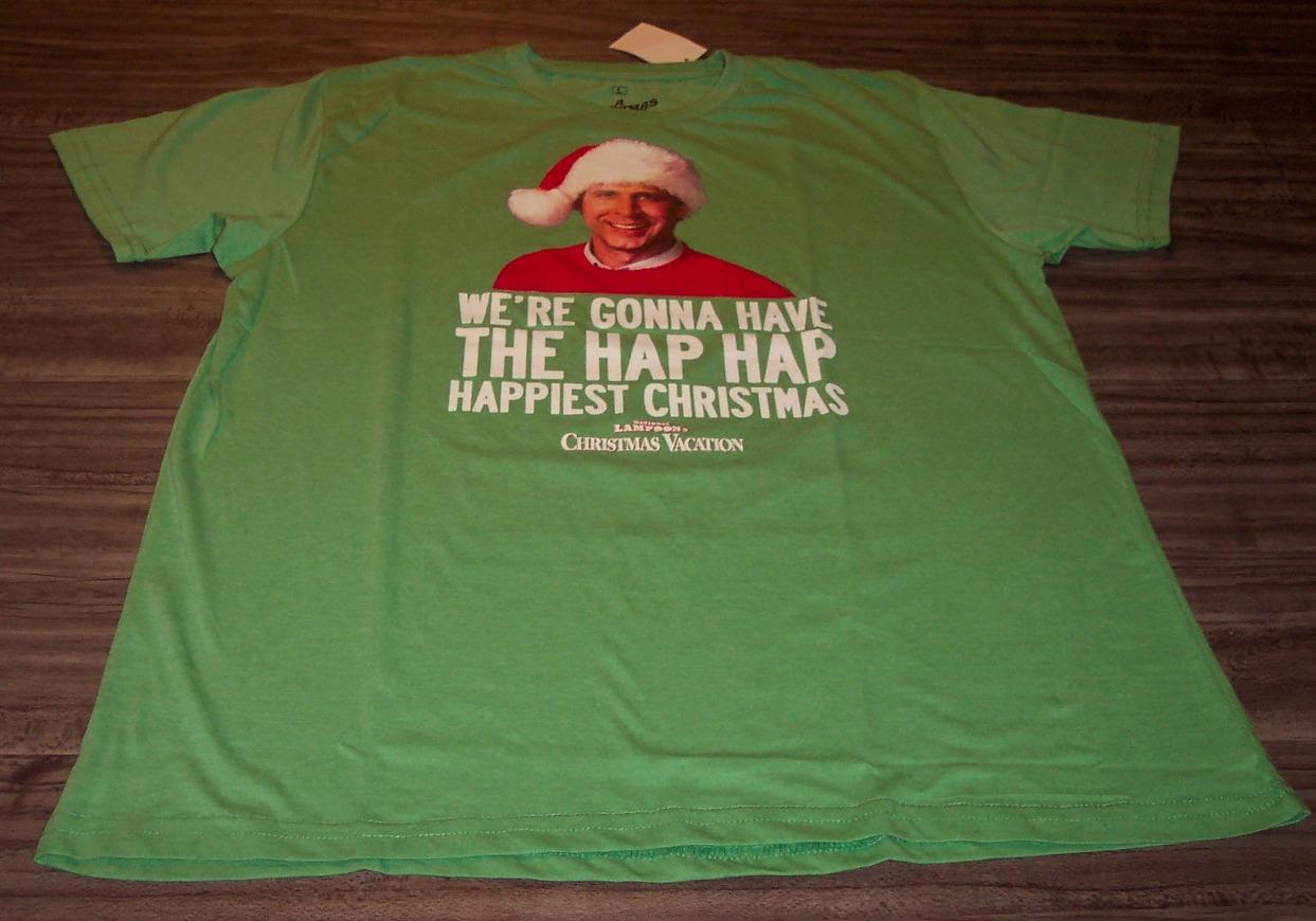 This is a National Lampoon's CHRISTMAS VACATION "We're Gonna Have The Hap Hap Happiest Christmas" T-shirt. It is a size LARGE, and it is NEW with the tag. It is 22 inches from armpit to armpit and 29 inches in length. Combine auctions to save on shipping. AG
