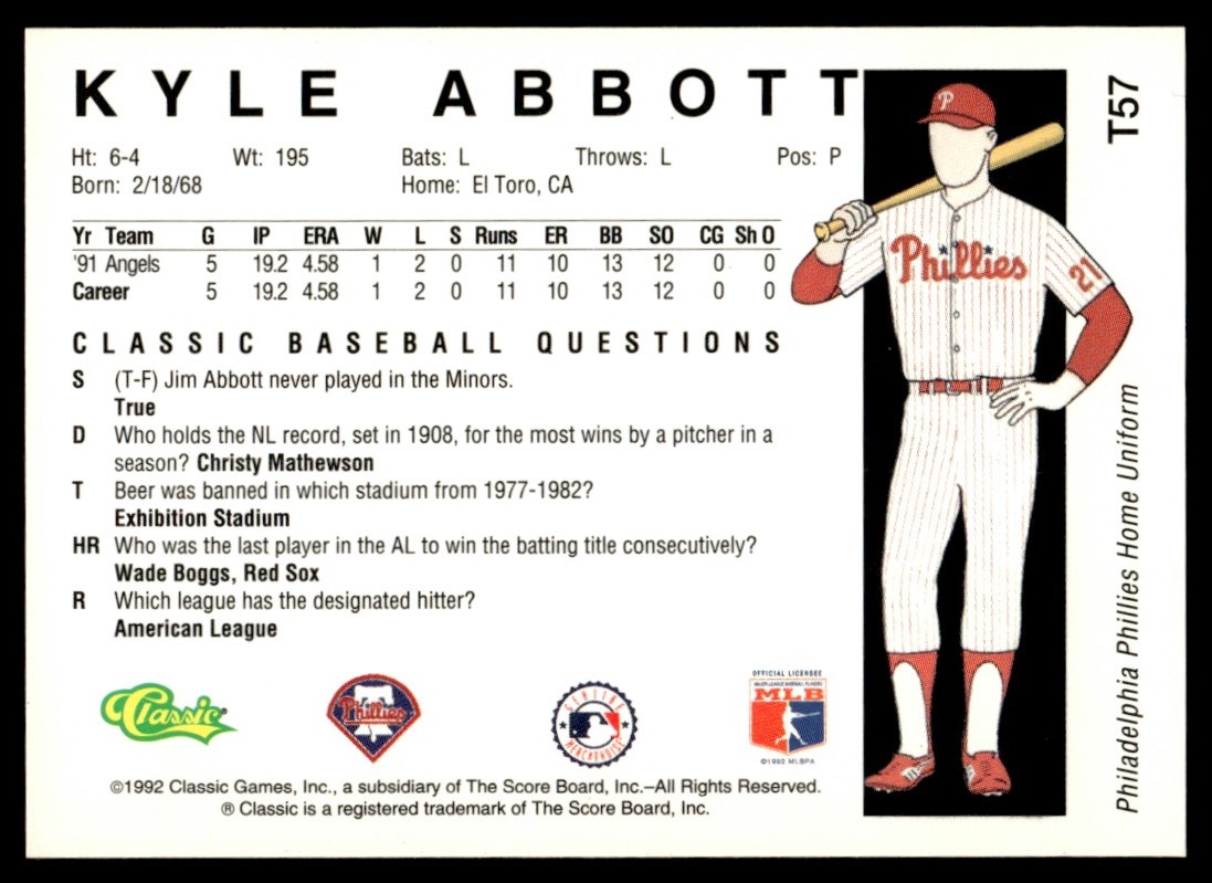 | 1992 Classic II #T57 Kyle Abbott Philadelphia Phillies |