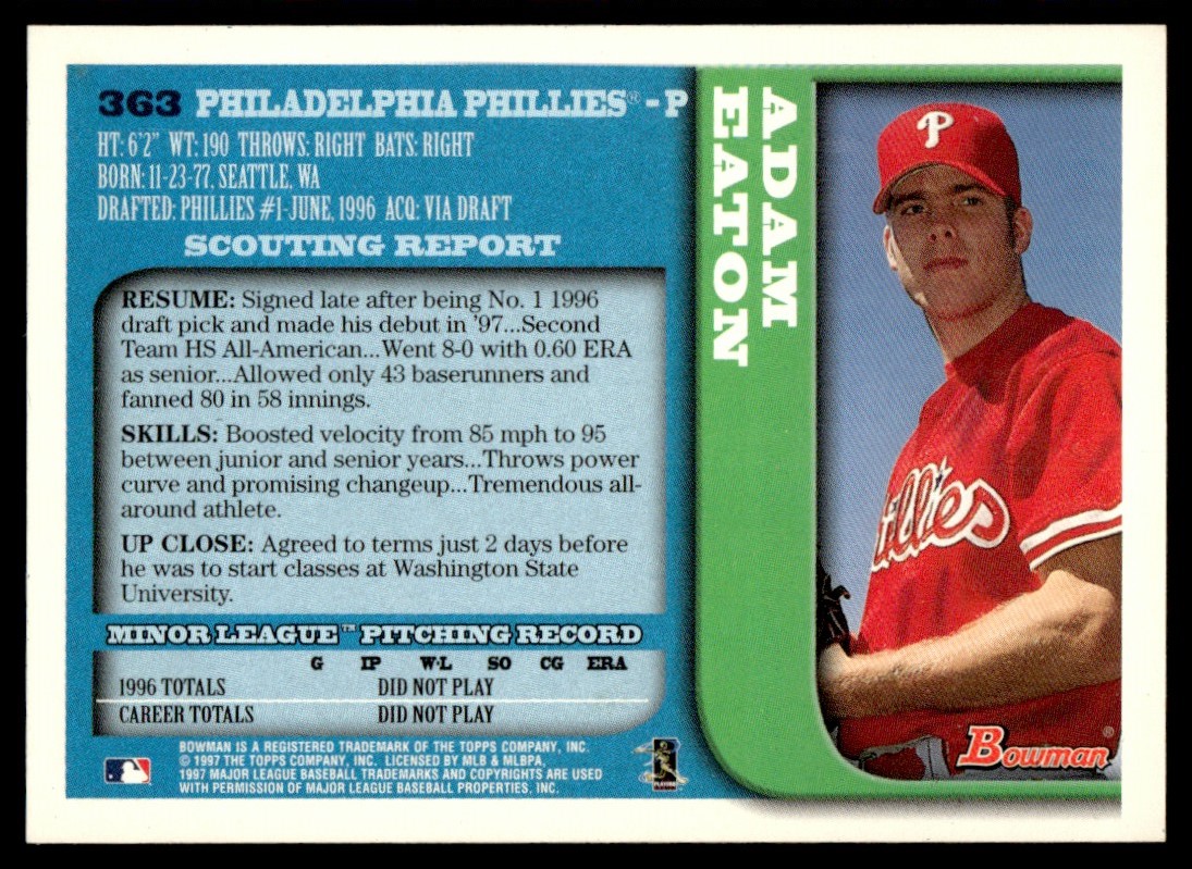 | 1997 Bowman #363 Adam Eaton Rookie Philadelphia Phillies |
