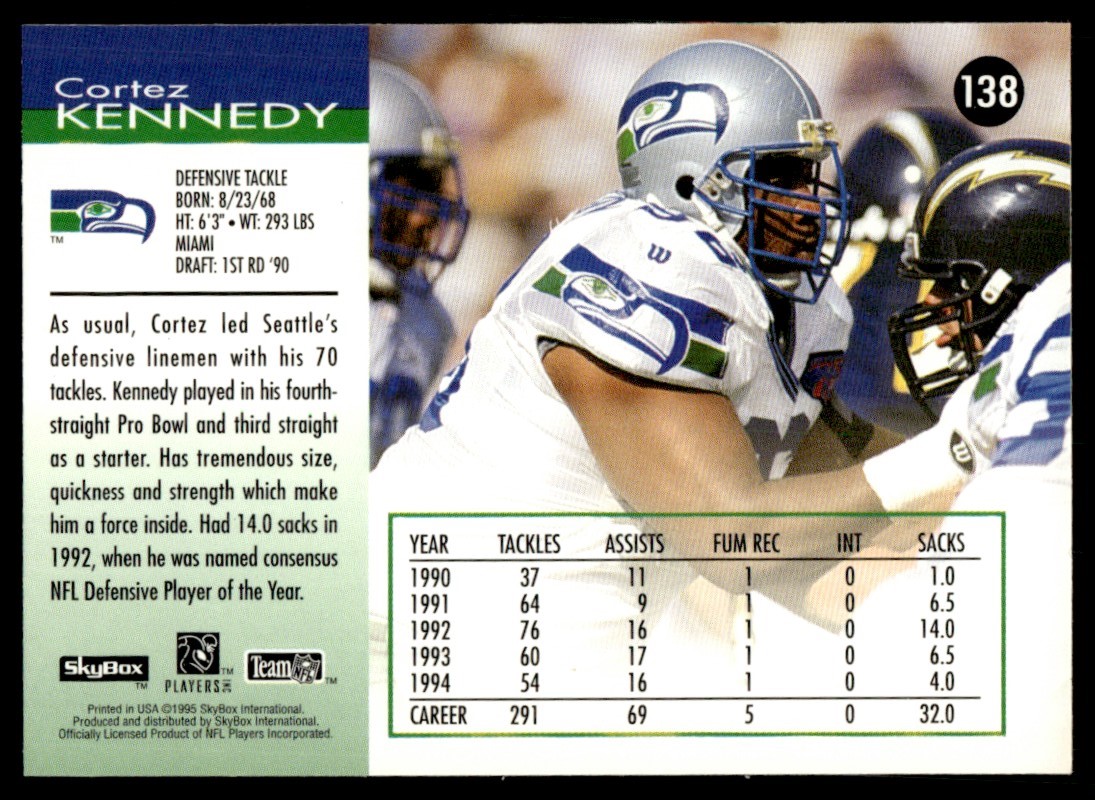 | 1995 SkyBox Impact #138 Cortez Kennedy Seattle Seahawks |