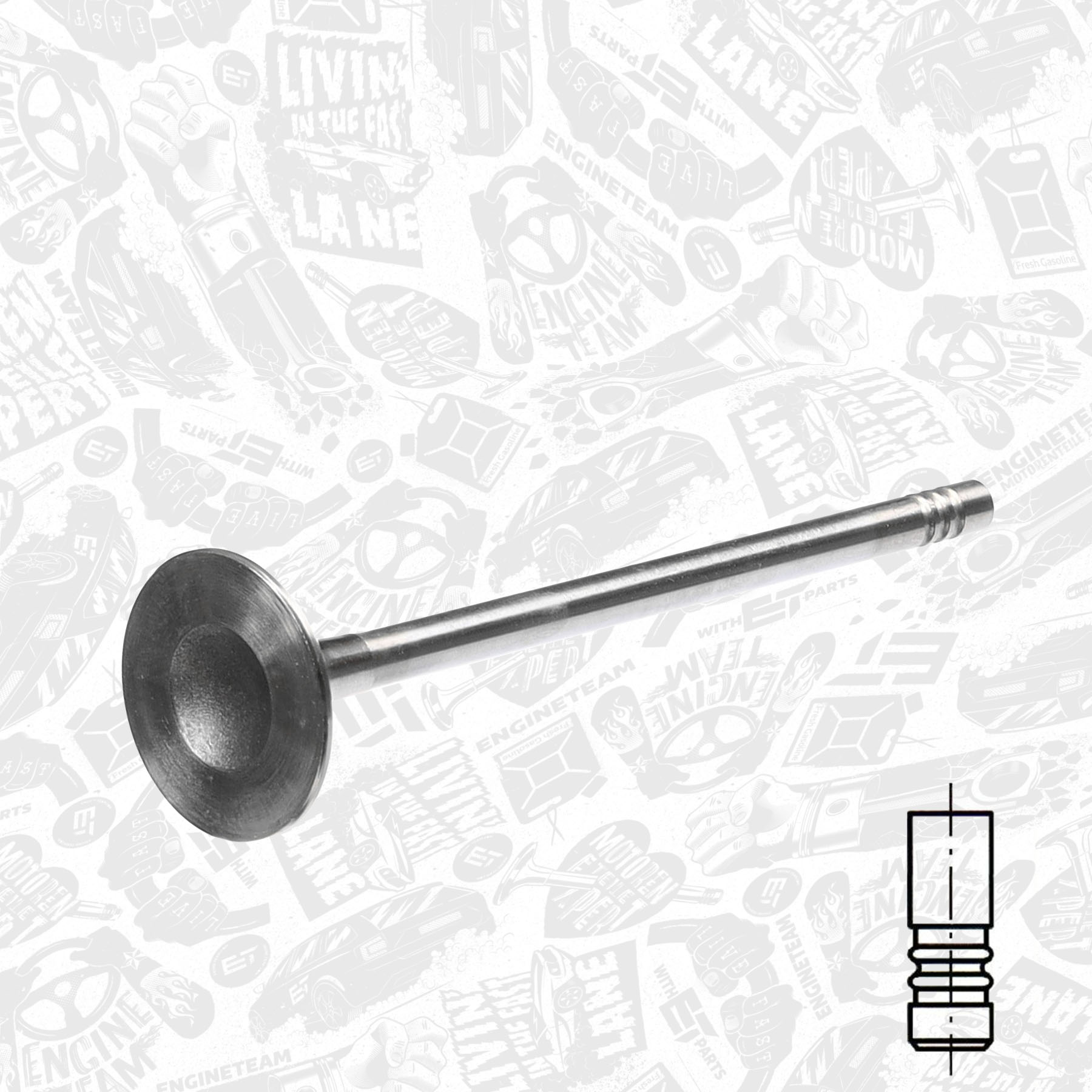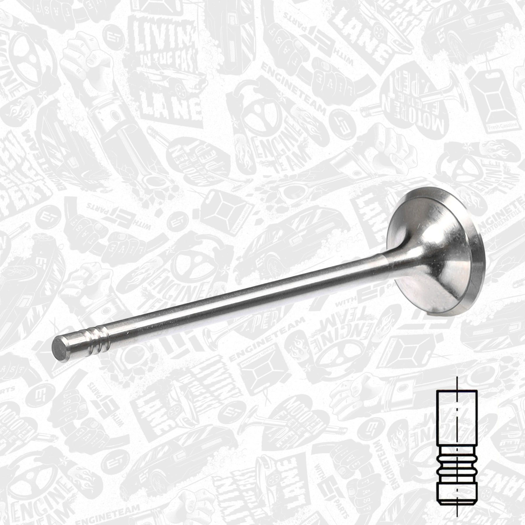 Auslassventil ET Engineteam für Fahrzeuge Opel/ Vauxhall ab BJ 1996. Passend für Fahrzeuge z. B. Opel Adam / Astra / Combo / Corsa / Meriva / Tigra, Suzuki Wagon R, Vauxhall Adam / Astra / Agla /Corsavan / Corsa und weitere. Motoren A 12 XER, LUJ, A 14 XEL, B 12 XEL, B 14 NEH, B 14 XEJ, Z 10 XE, Z 12 XEP und weitere.