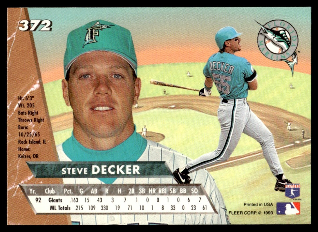 | 1993 Ultra #372 Steve Decker Florida Marlins |
