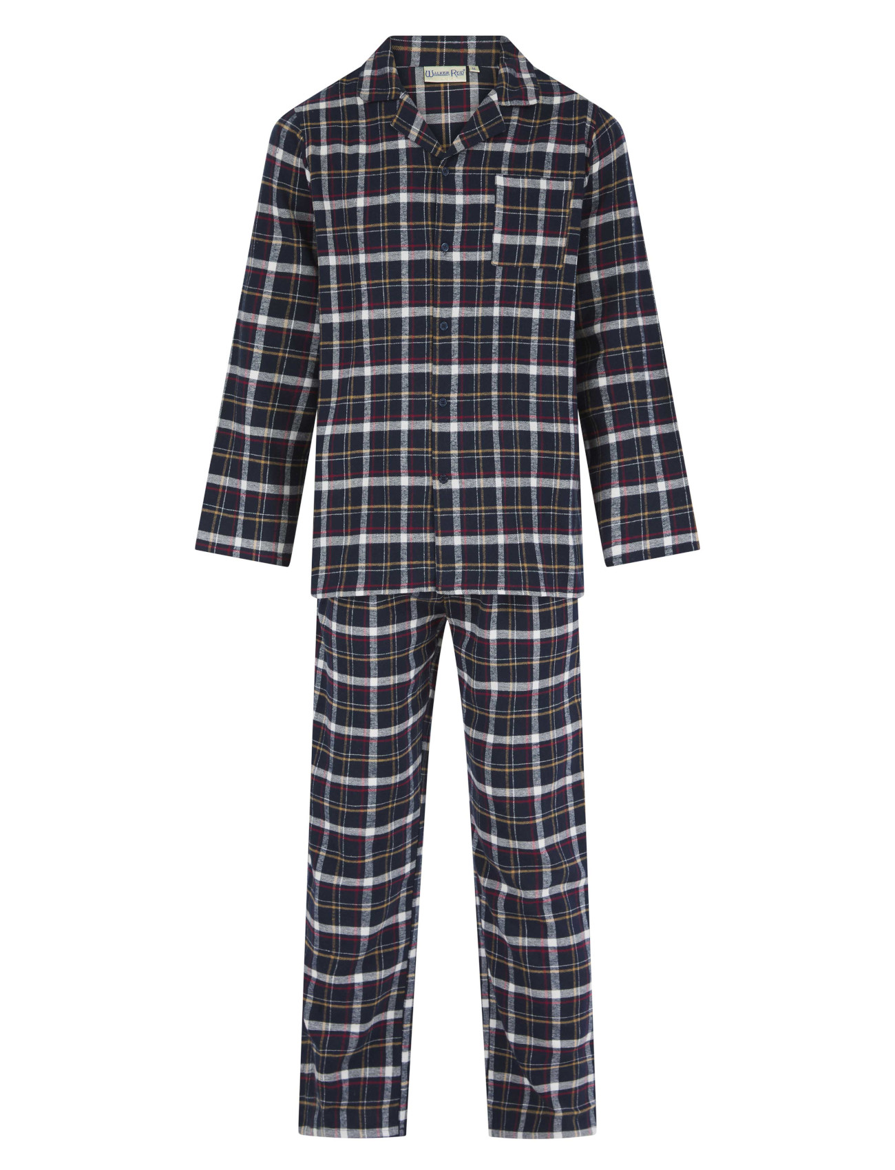 - These traditional pyjamas from Walker Reid have a checked pattern throughout and the set includes a long sleeved button up top and a pair of full length pyjamas. They would be great for keeping you warm during the cold nights!