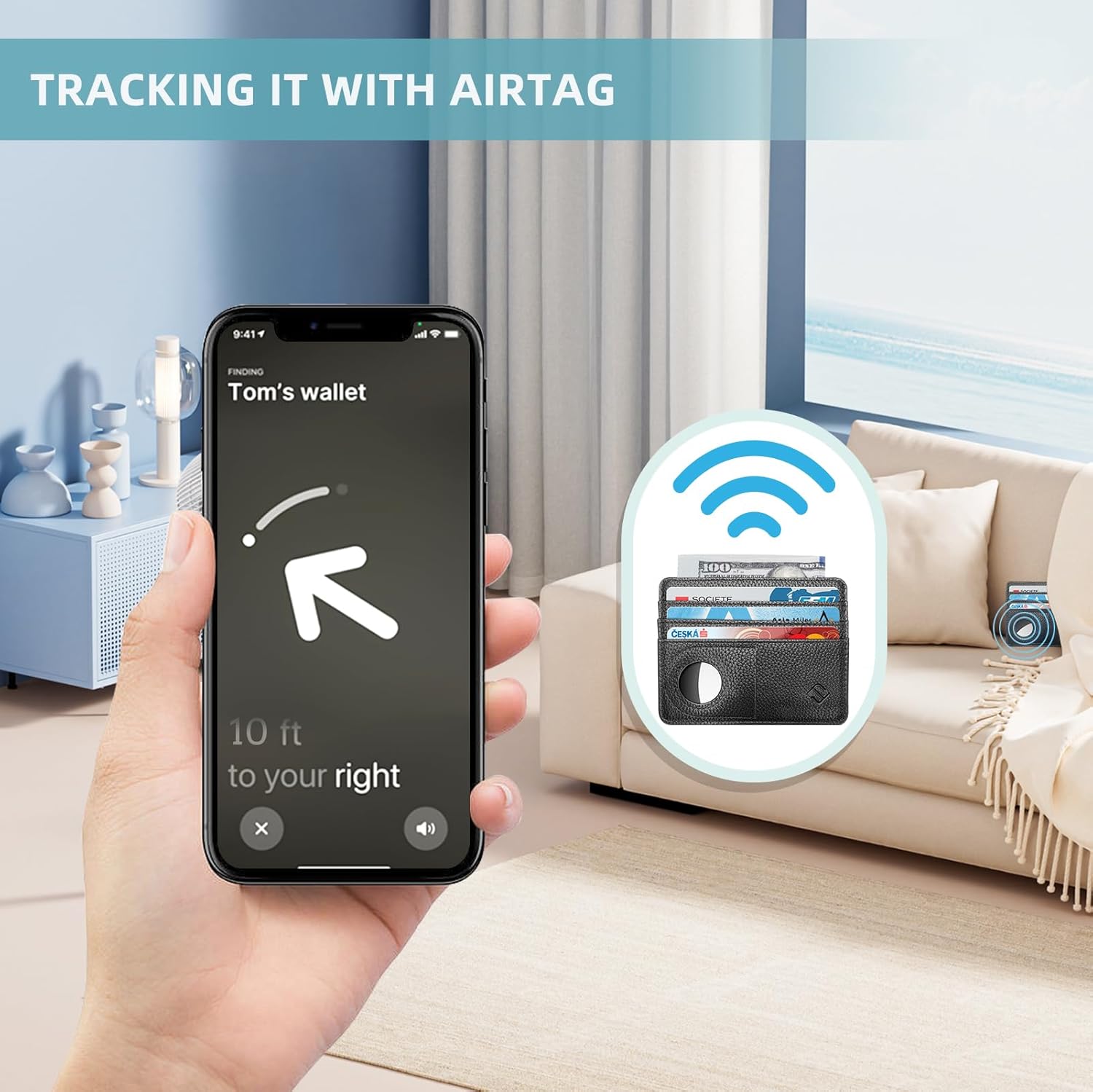 【Built-in Case for AirTag】One of the most interesting features of this card holder is its compatibility with Airtags. By attaching an Airtag to the card case, you can track its location using your iPhone or iPad. This feature makes it a great option for people who are prone to losing their cards or want an extra layer of protection. Note: the AirTag isn't included.