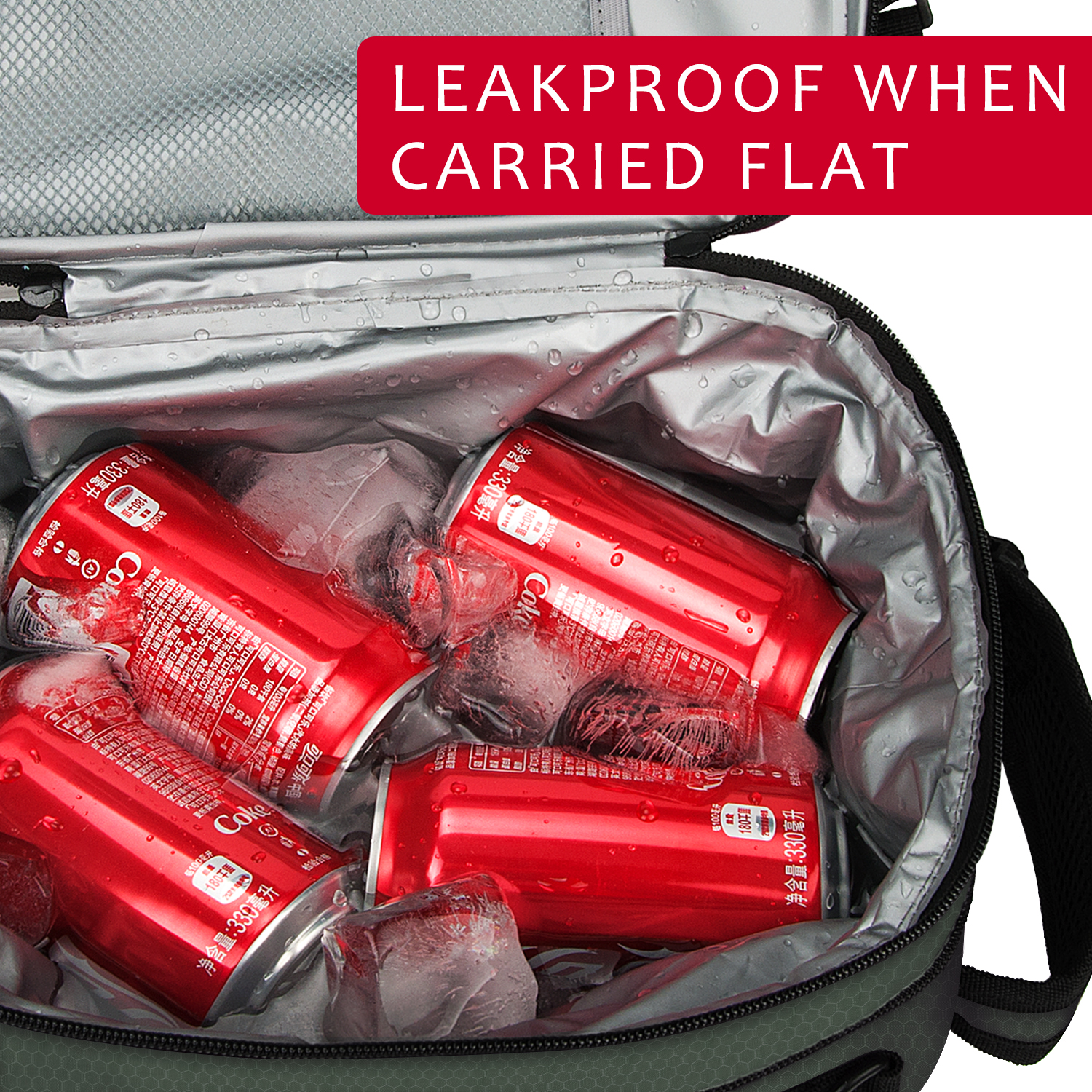 LEAKPROOF WHEN CARRIED FLAT - The thermal insulation is leakproof on account of adapting heat-melted seam technology, but notice to carry the lunch bag flat so that it can be leakproof, otherwise, the liquid will outflow from the zipper strap.