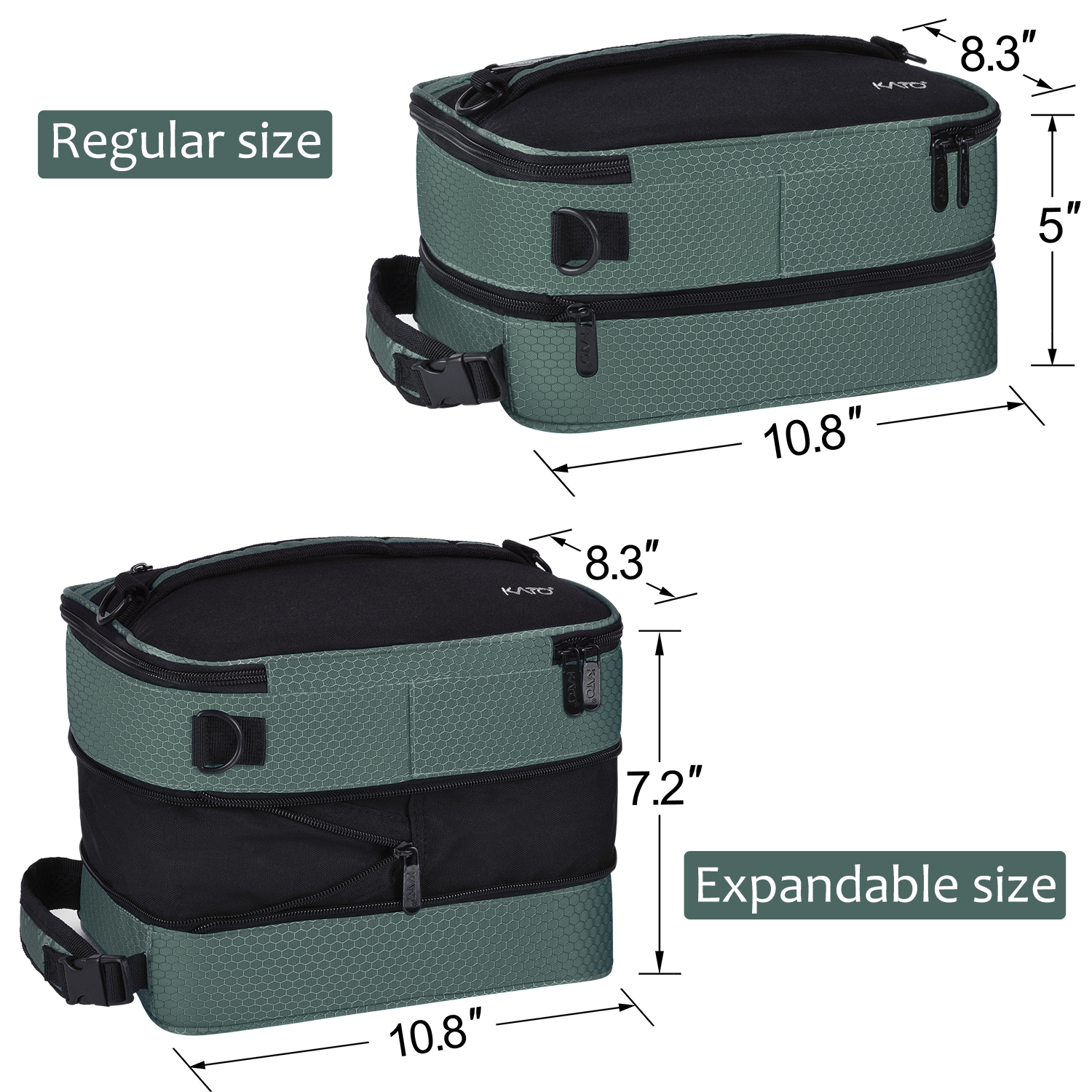 Kato insulated expandable lunch bag is lightweight, durable and compact insulated food container provides double capacity when expanded. Available in several colors and has a dual zip-around closure.