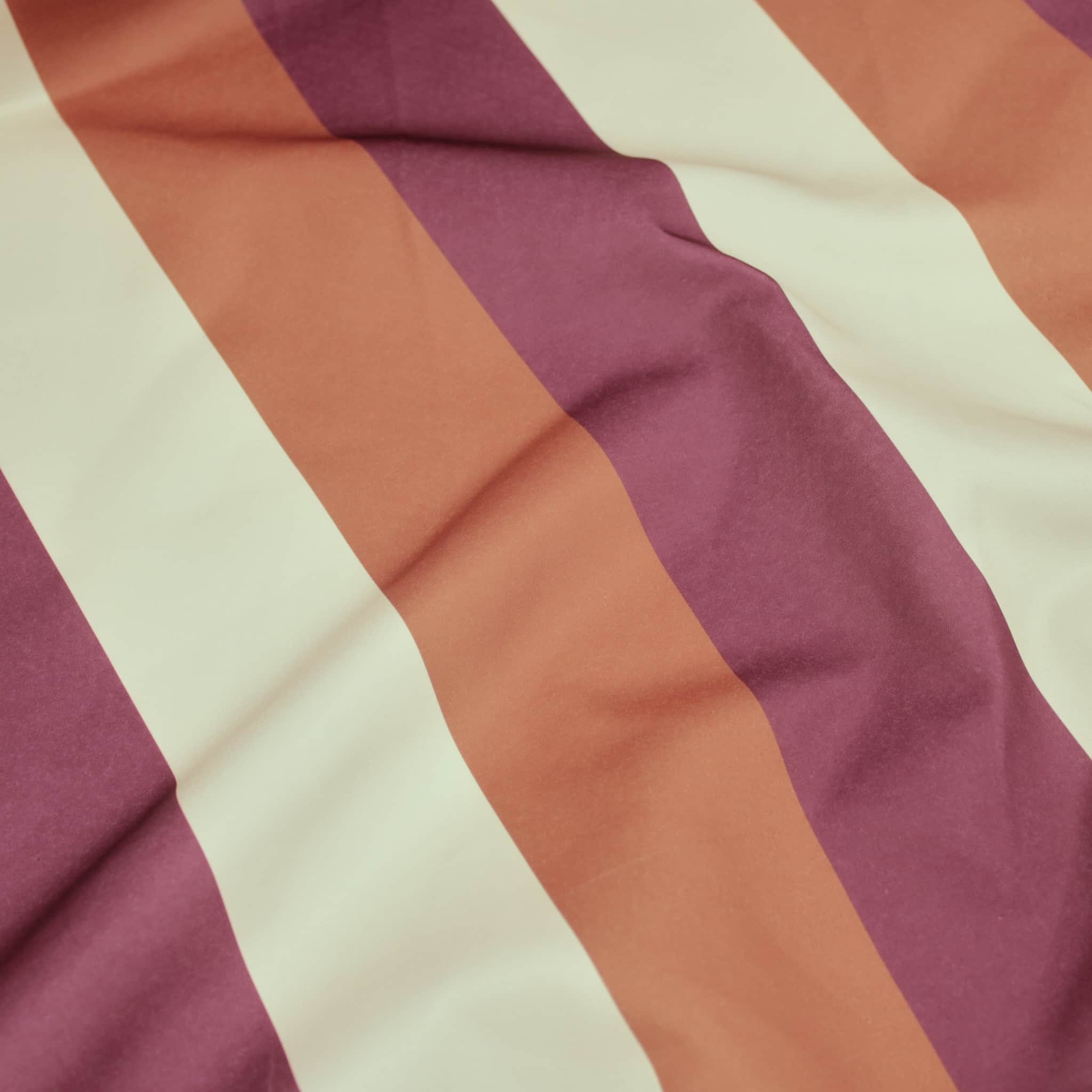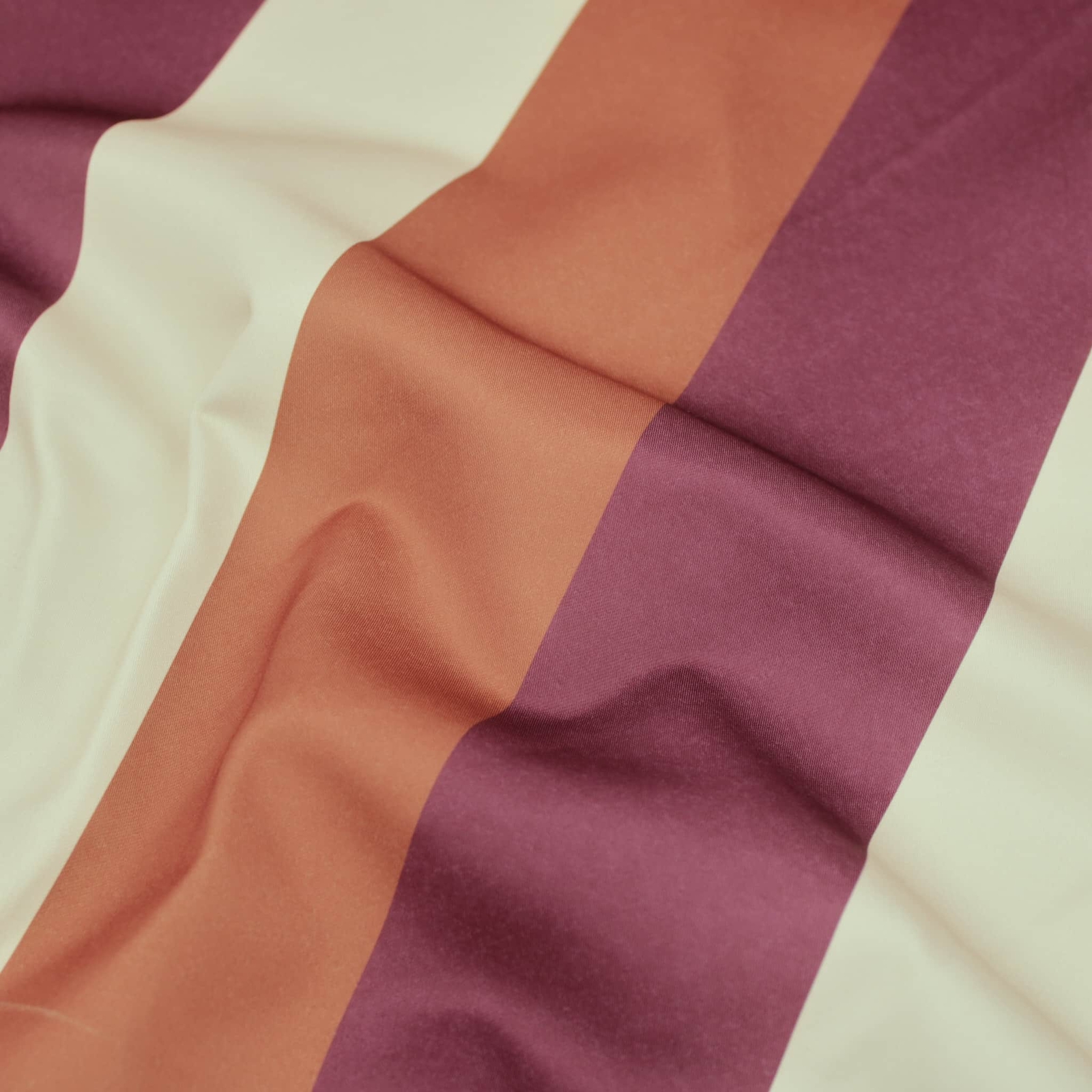 - Bold thick stripes of colour in aubergine, pale flamingo and rust.