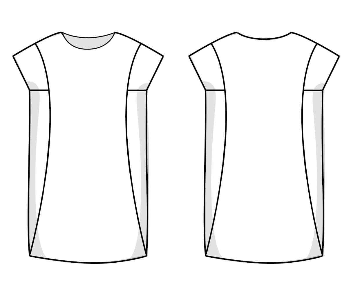 The Panel Dress is a loose fitting shift dress with cap sleeves and integrated side panels.