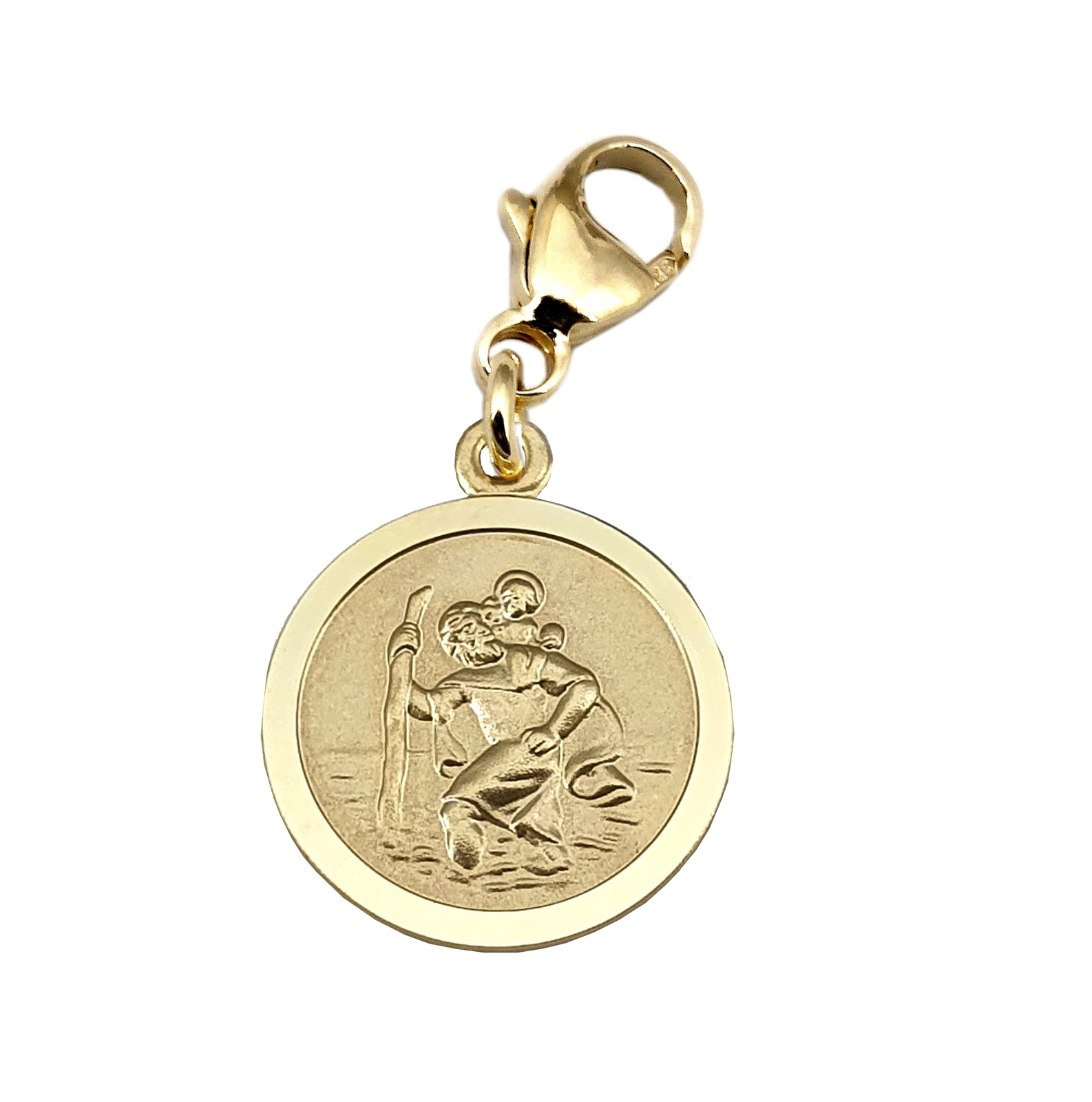Heiliger Christophorus mit Kind auf dem Rücken plastisch ausgearbeit. Rand diamantiert Christophorus mattiert.