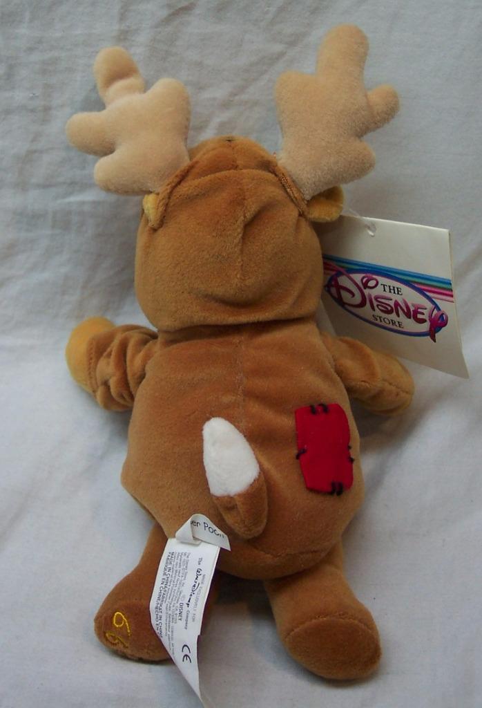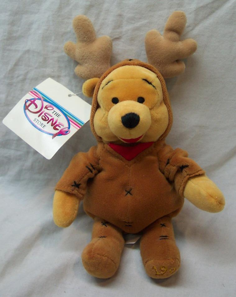 | This is a Walt Disney WINNIE THE POOH BEAR AS REINDEER Bean Bag Stuffed Animal Toy. Made by The Disney Store for the Holiday / Christmas season in 1999. It is 8 inches tall. It is NEW with the tag. Combine auctions to save on shipping. Please contact me if you need to make other payment arrangements. ELAG ~~~~~~~~~~~SMOKE FREE HOME!!~~~~~~~~~~~