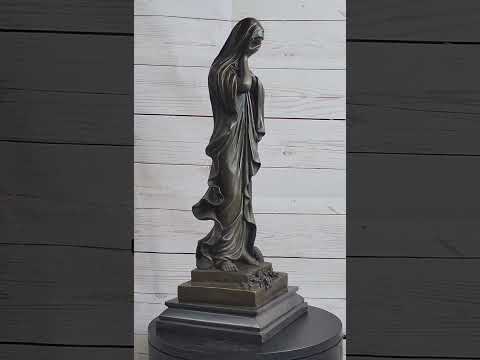This emotionally charged bronze sculpture beautifully captures a poignant moment, depicting the Virgin Mary in a state of deep contemplation and sorrow. As the day wanes and the faithful depart, Mary stands amid the offerings of prayers and devotion left by worshipers. Her eyes, obscured by her hand, well with tears, symbolizing her profound empathy for the suffering and struggles of humanity. Each tear that falls from her gentle touch carries a profound blessing, bestowing solace upon the earth below.