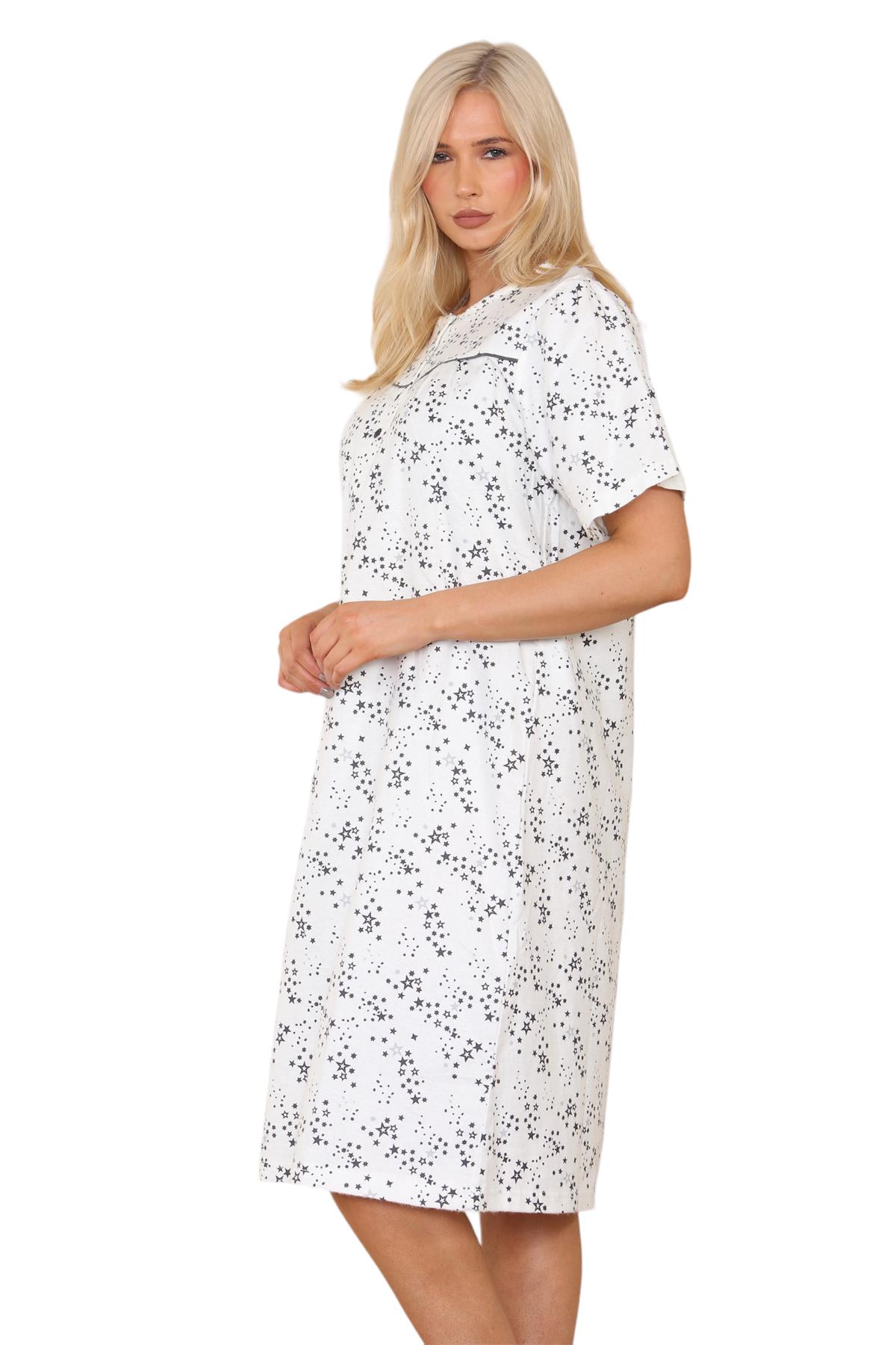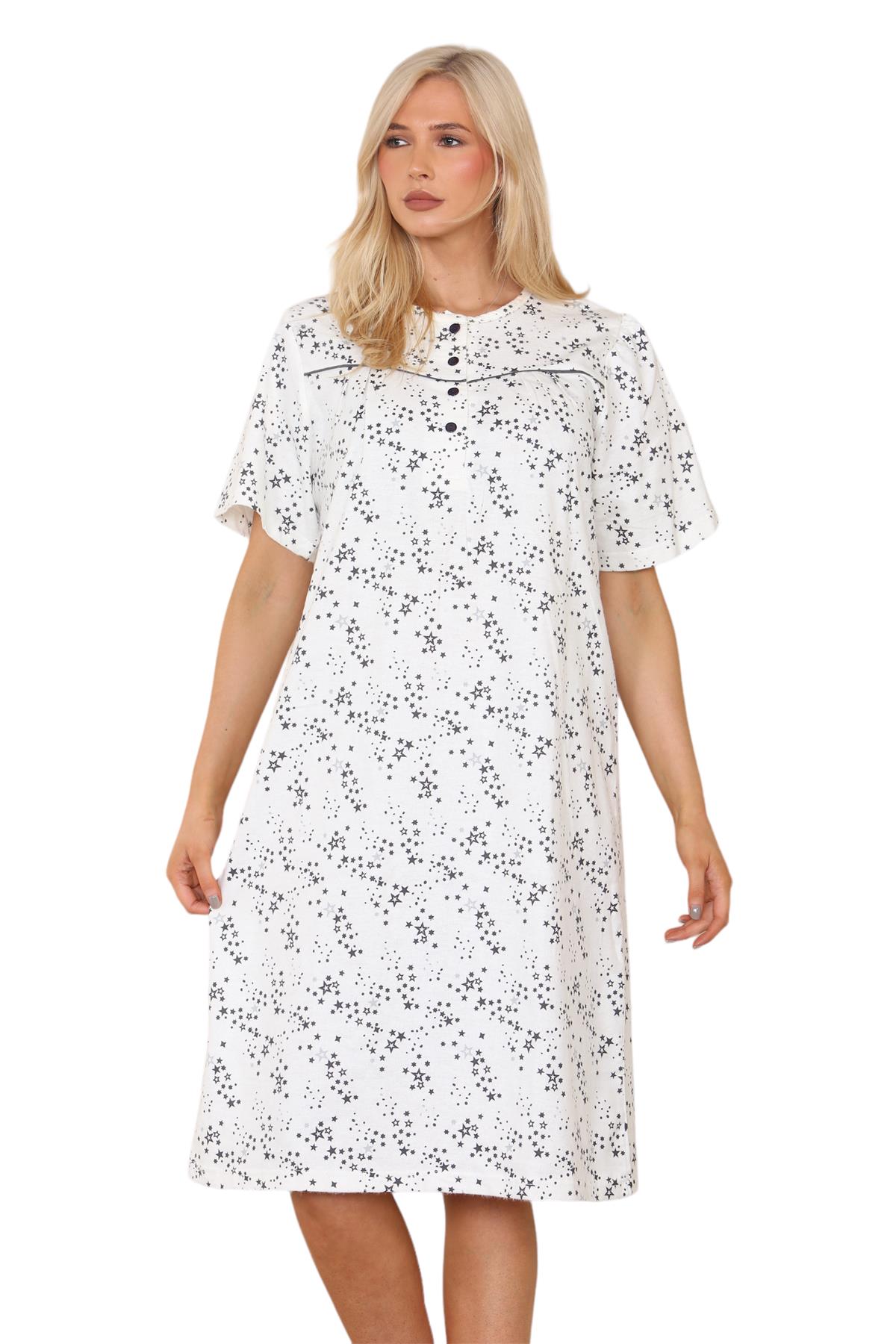 - This Short Sleeve Flannel Brushed cotton 4 Buttons pleated at the front Knee Length Nightie is for Extra Comfort and a winter Look.