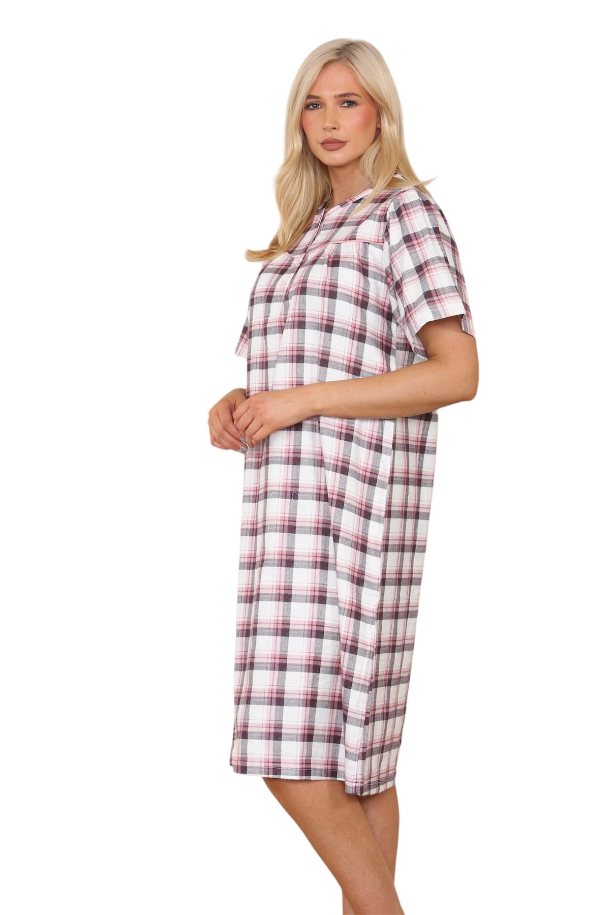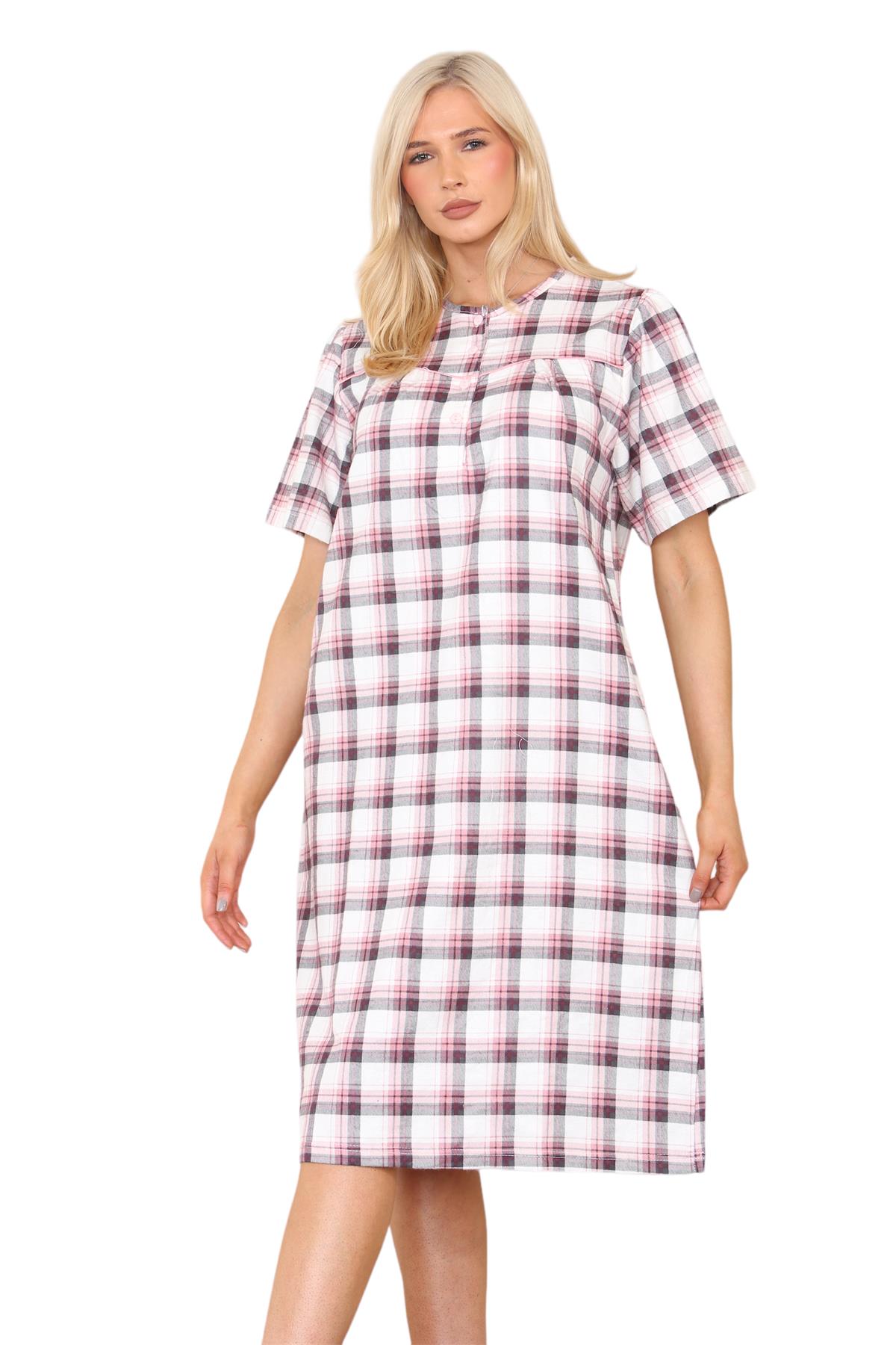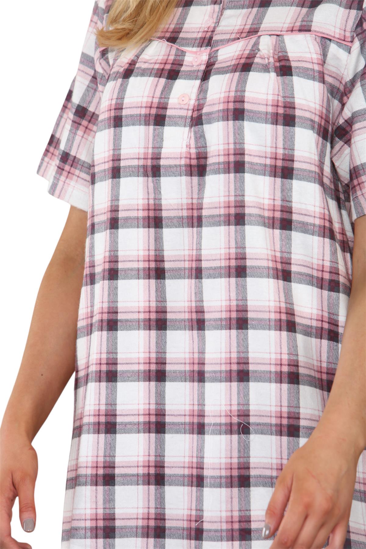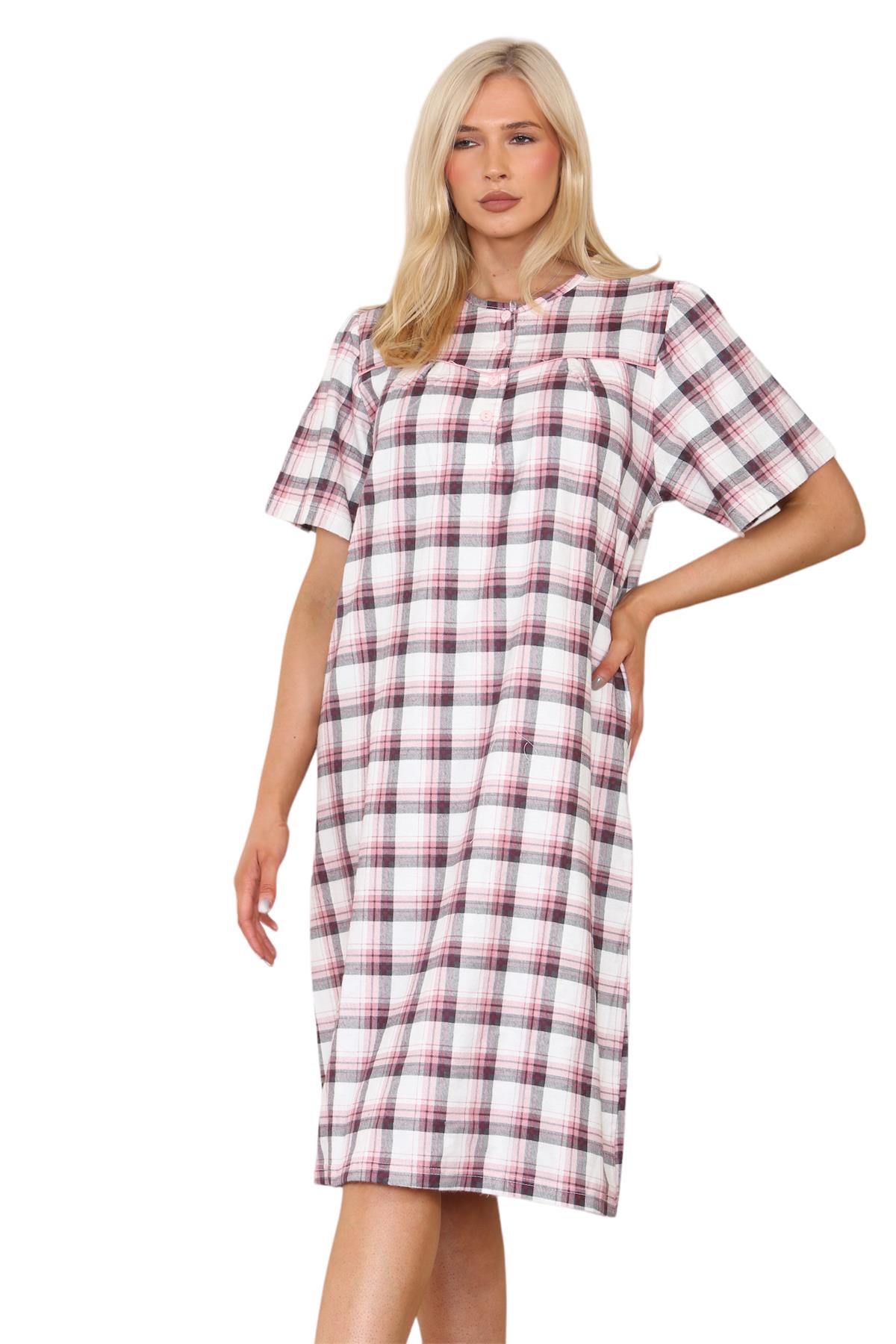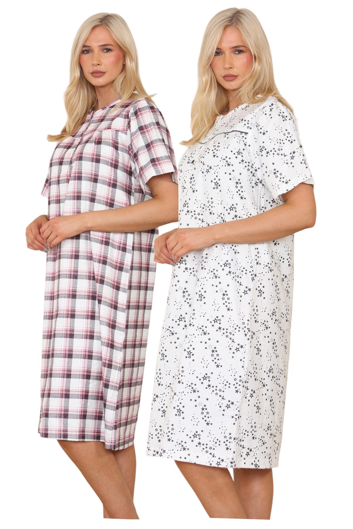 - Women Flannel Nightwear Tartan Checked Star Brushed Cotton Winter Nightie S to L