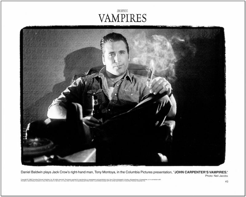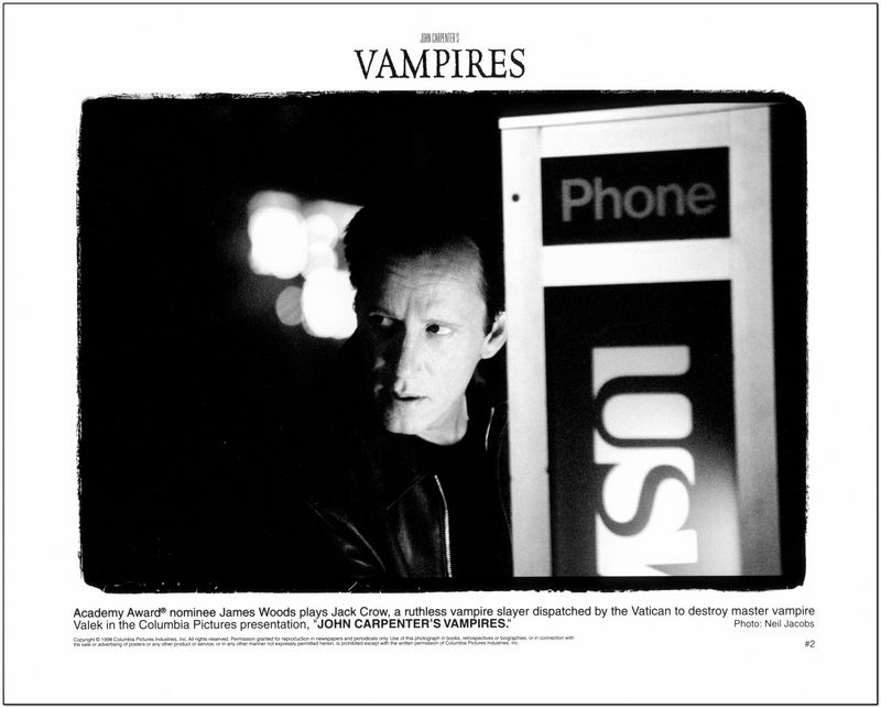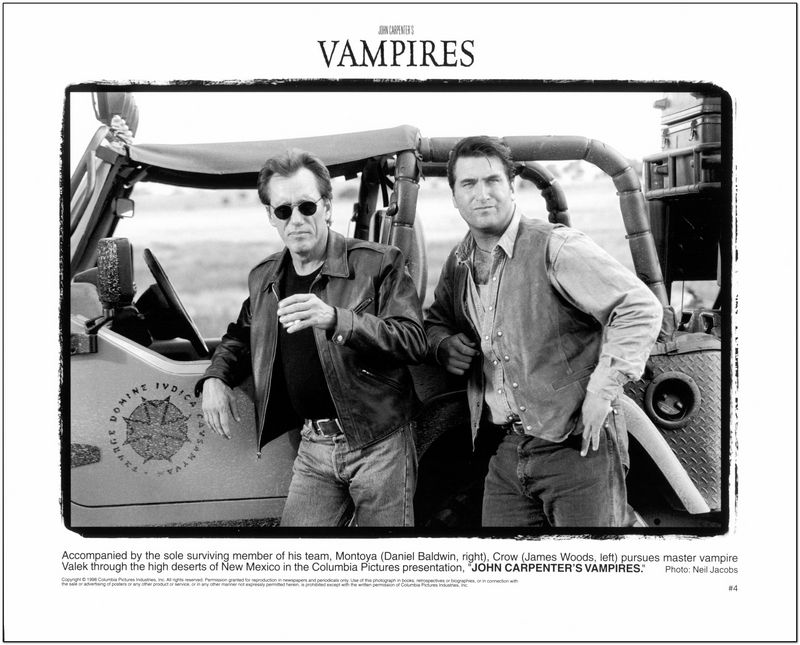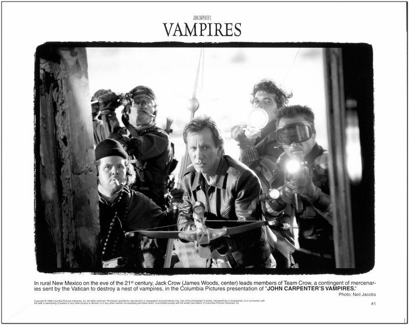 Here is a set of 4 studio-issued glossy photos from the 1998 horror film - "VAMPIRES" - starring James Woods, Daniel Baldwin, Sheryl Lee, Thomas Ian Griffith, Maximilian Schell and Tim Guinee. Directed by John Carpenter.
