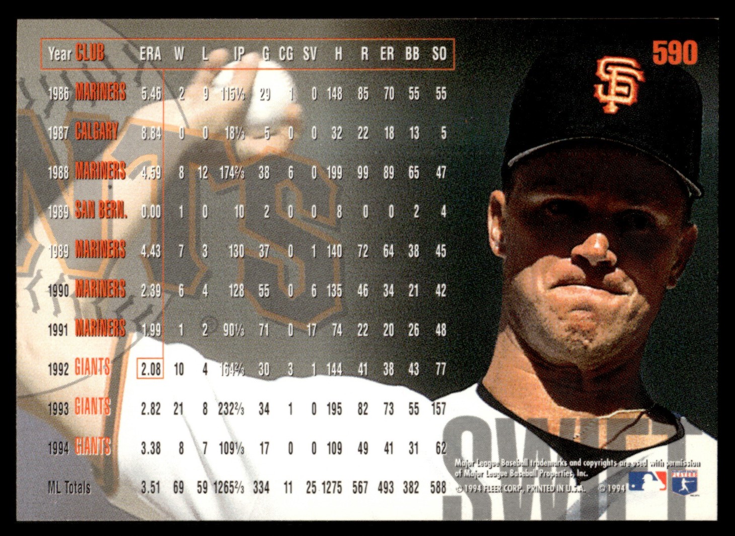 | 1995 Fleer #590 Bill Swift San Francisco Giants |