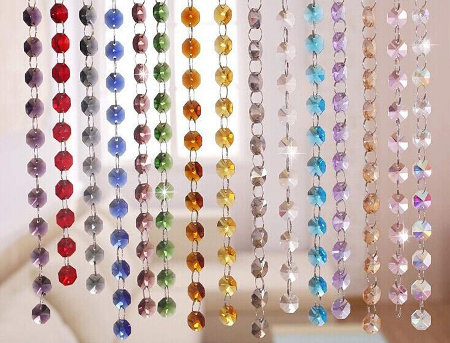10FT Crystal Octagon Beads 14mmChain Chandelier Prisms Hanging Wedding Garland