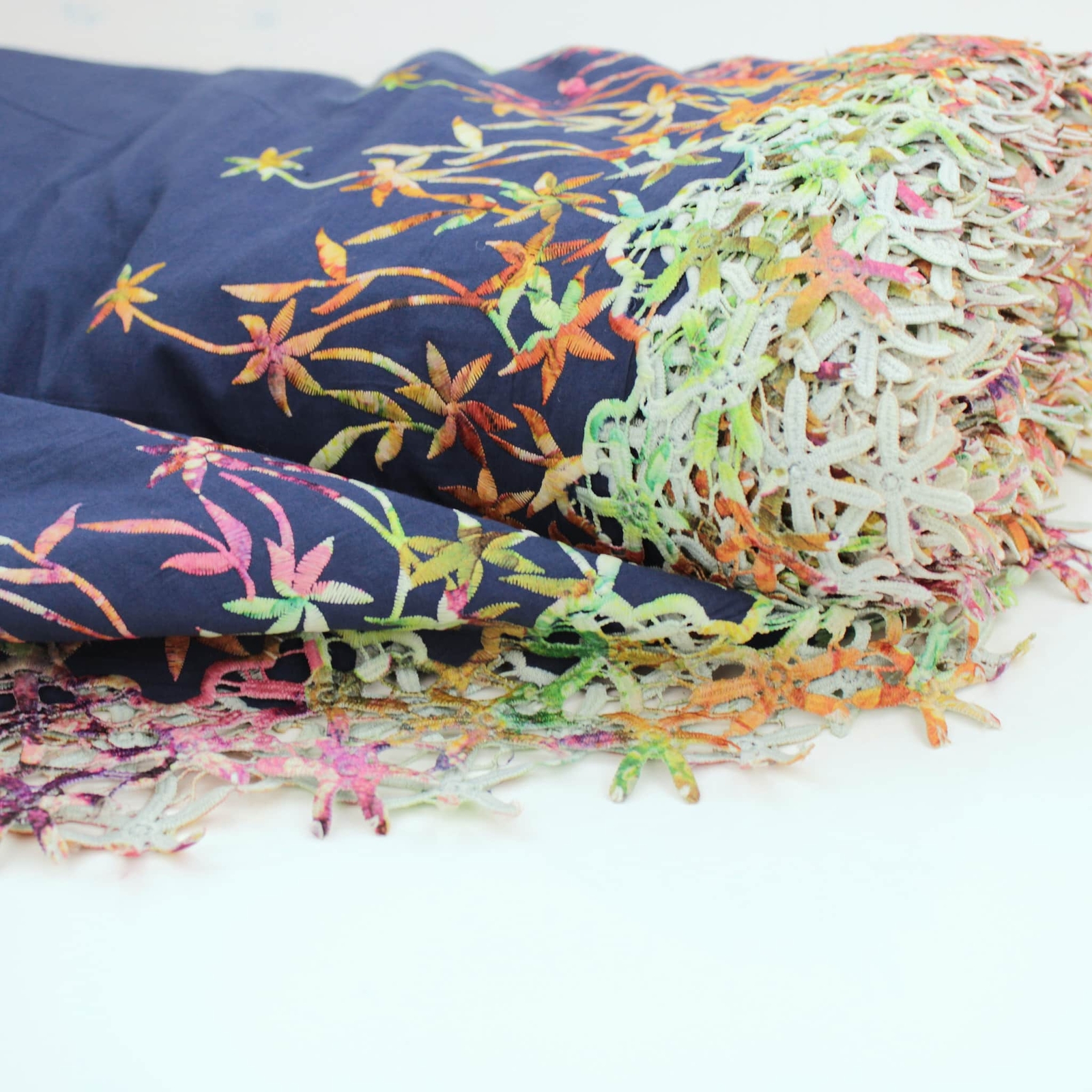 -A lovely double border embroidery with flower stems trailing across the width of the fabric finished with a wonderful embroidered selvedge
