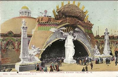 FOR YOUR CONSIDERATION, HERE IS A 1906 POSTMARKED POST-ENTRANCE TO DREAMLAND, CONEY ISLAND, NEW YORK. BUY IT NOW FOR $9.99