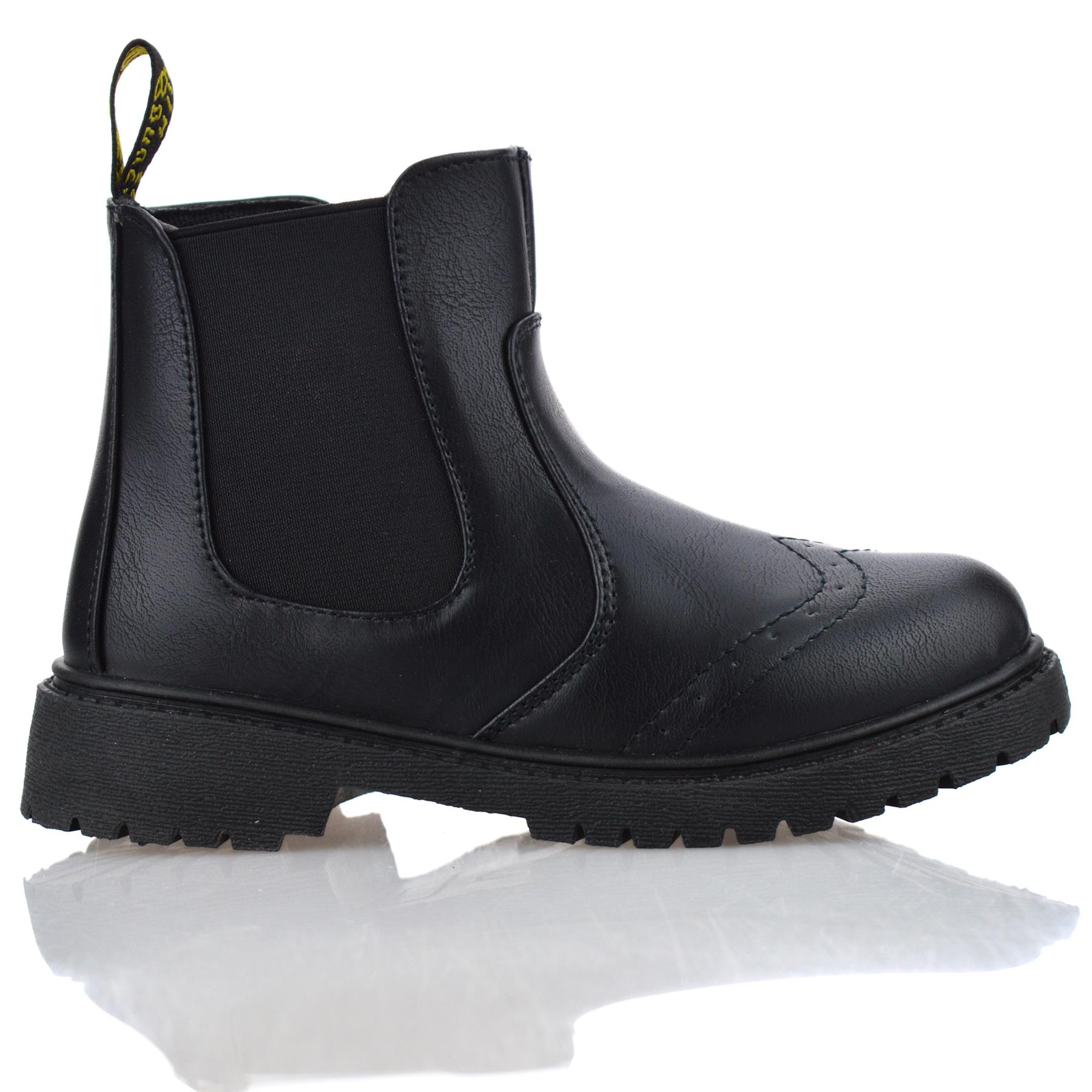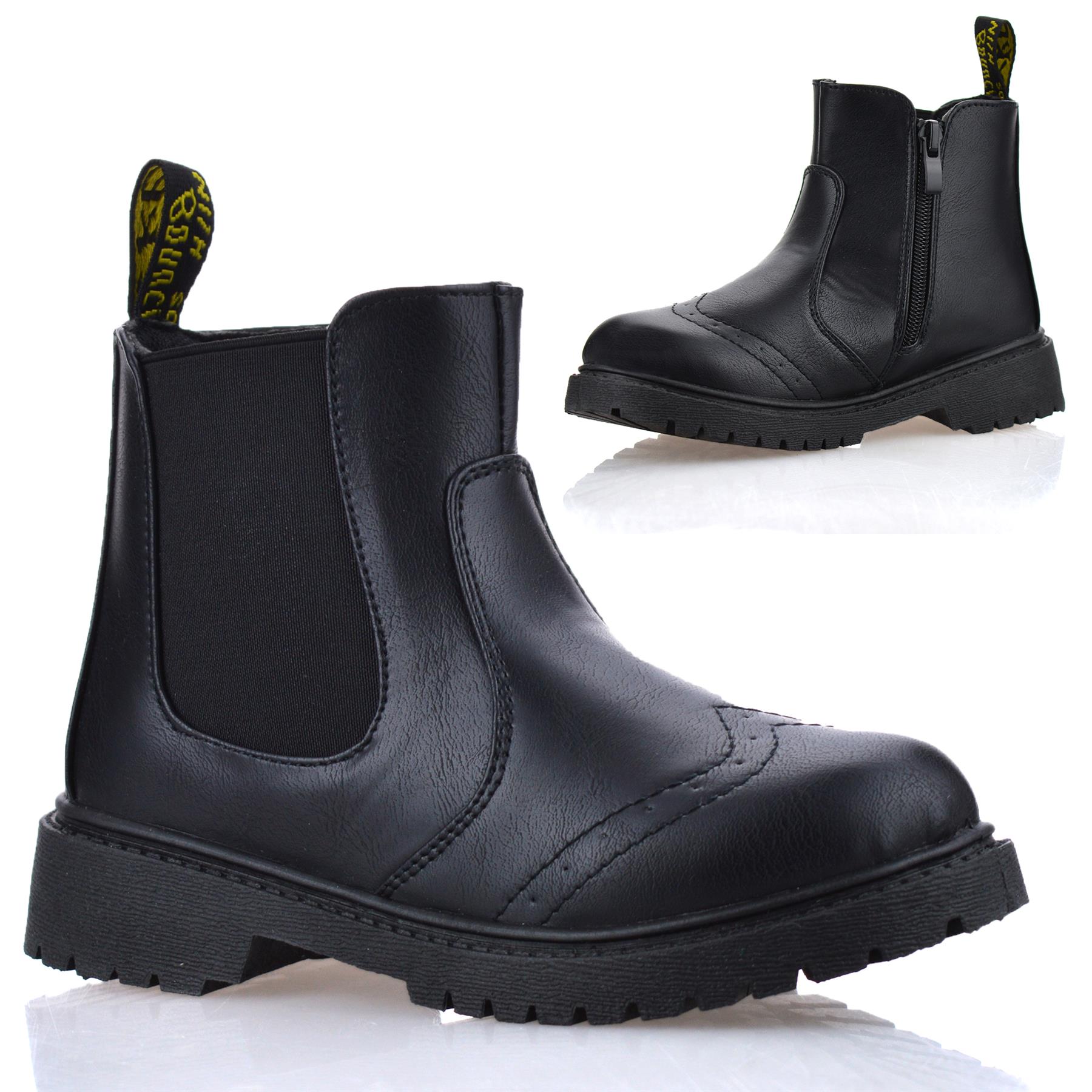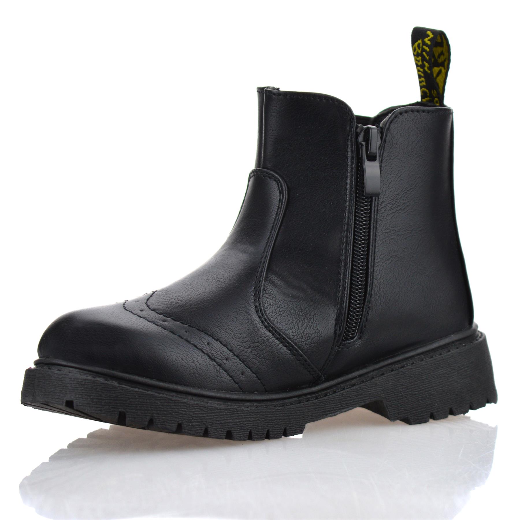 Boys Girls Kids Zip Up School Casual Winter Chelsea Ankle Brogue Boots Shoe Size