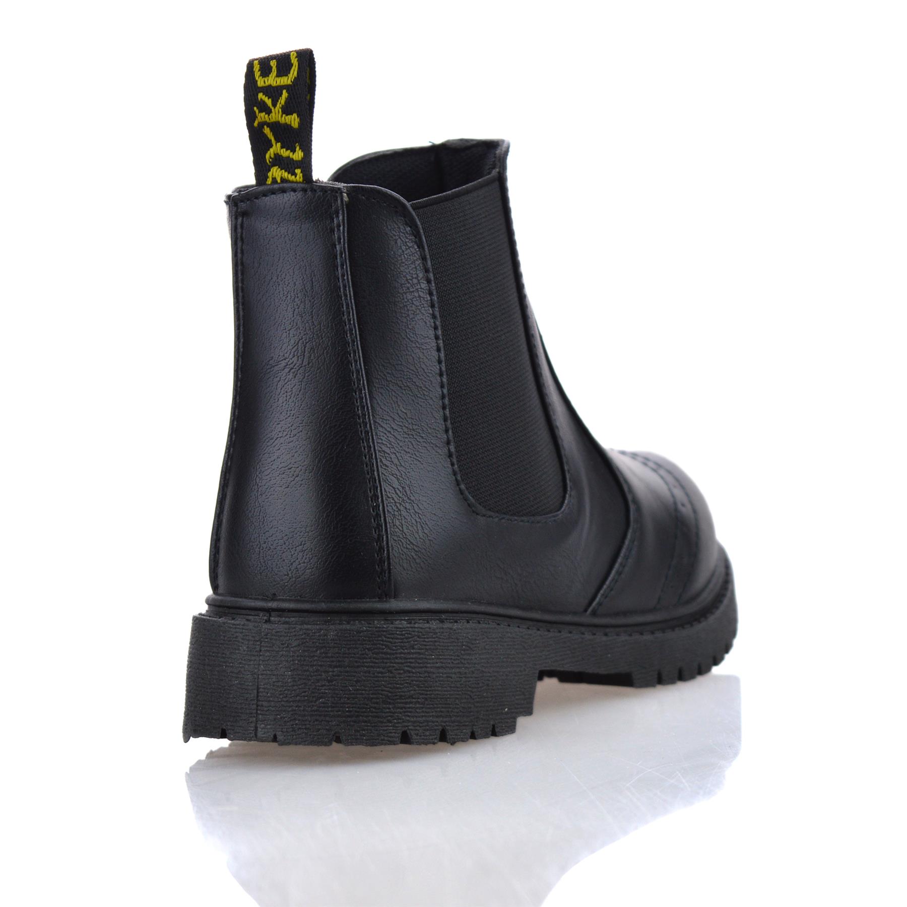 High quality boxed, durable leather like upper with side stretch gusset, rear pull tab, and inside zip for easier fastening.Fabric lined with cushioned foam insole and rubber grip outsole (RRP £25).