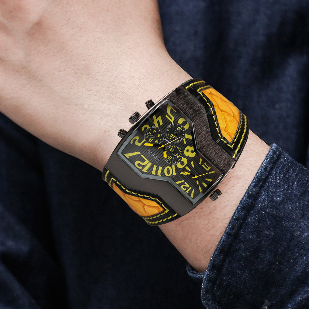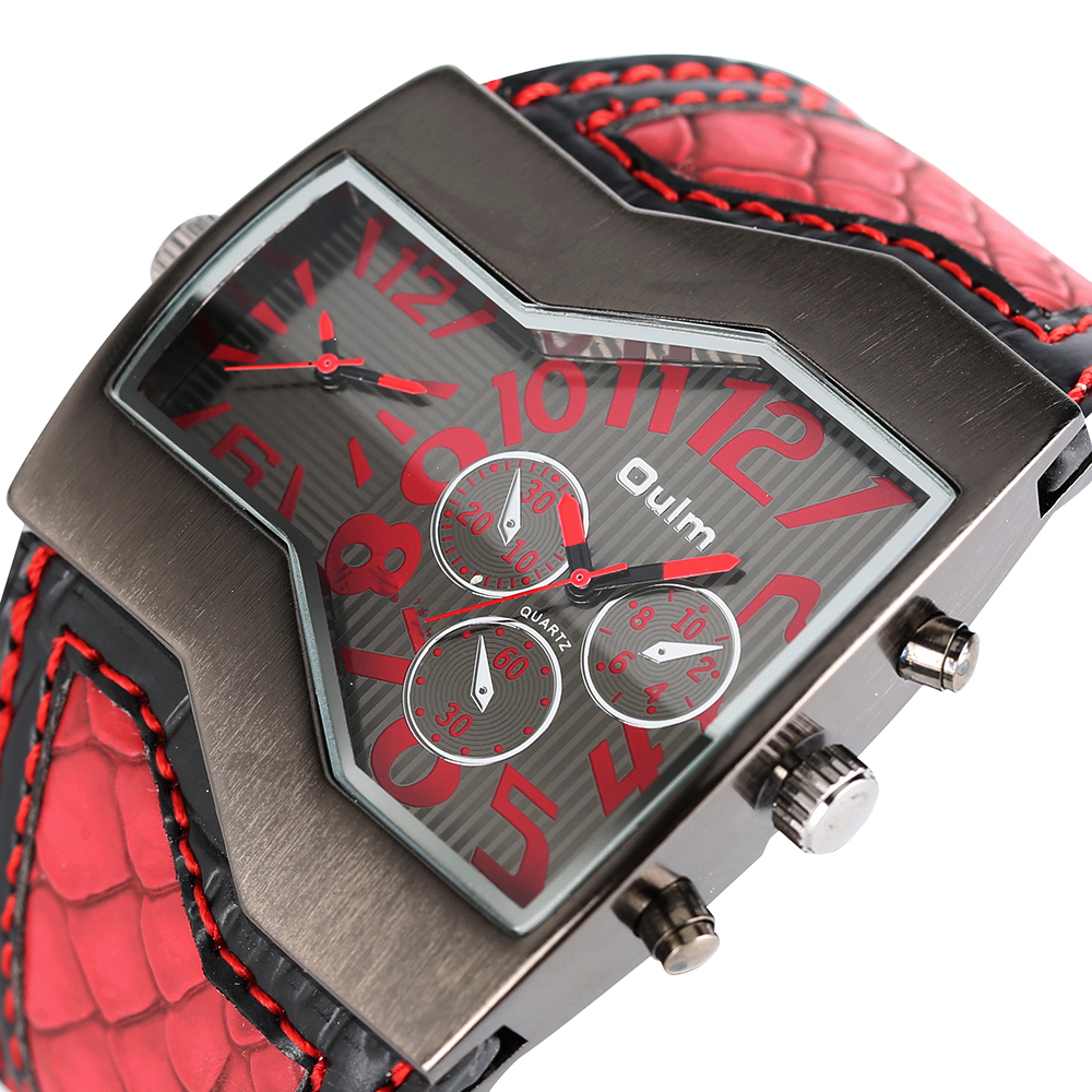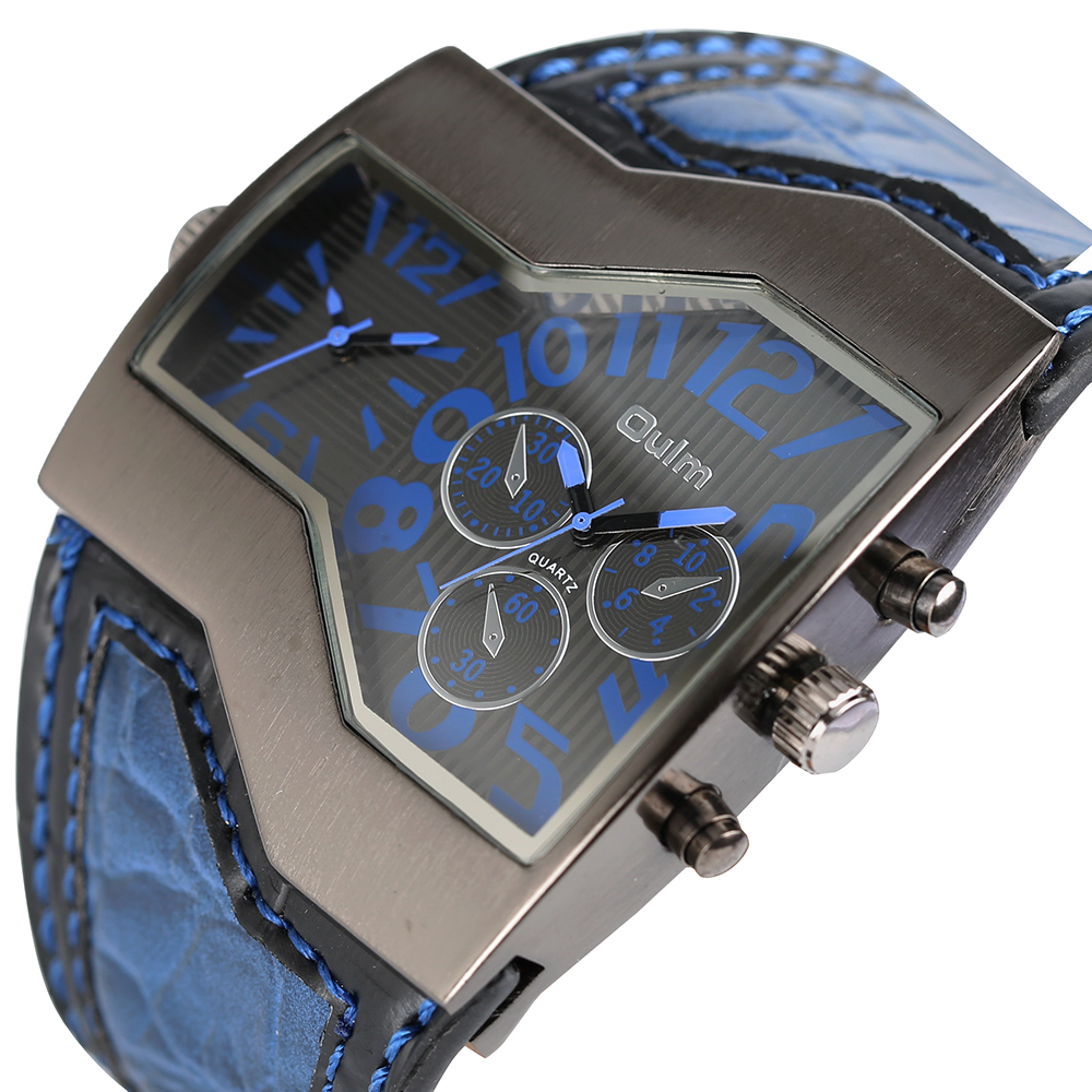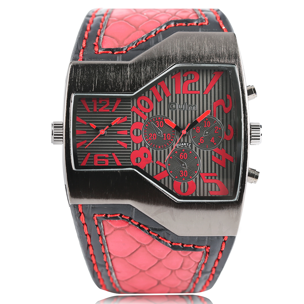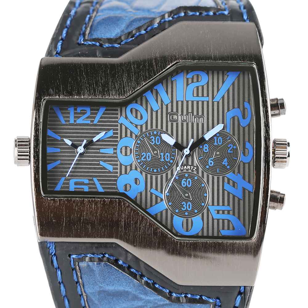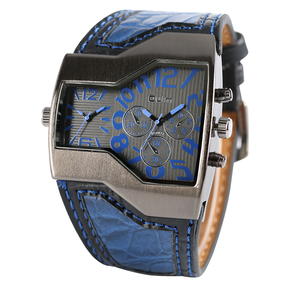 Product Features: 100% Band New and High Quality Two Time Zone Movement Brand: OULM Movement: Quartz Dial Window Material: Glass Buckle Type: Pin Buckle Case Material: Stainless Steel Band Material: Leather Case Size: Approx.5.3*4.8 cm Case Thickness: Approx.1.3 cm Watch Strap Width: Approx.4.2 cm Watch Strap Length: Approx.23.5 cm (Including Case ) (2.54cm=1.00 inch) Note: The sub-dials just decorations,no function.