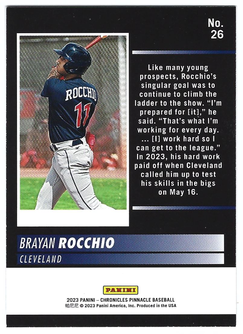 | 2023 Panini Chronicles Pinnacle #26 Brayan Rocchio Rookie Cleveland Indians |