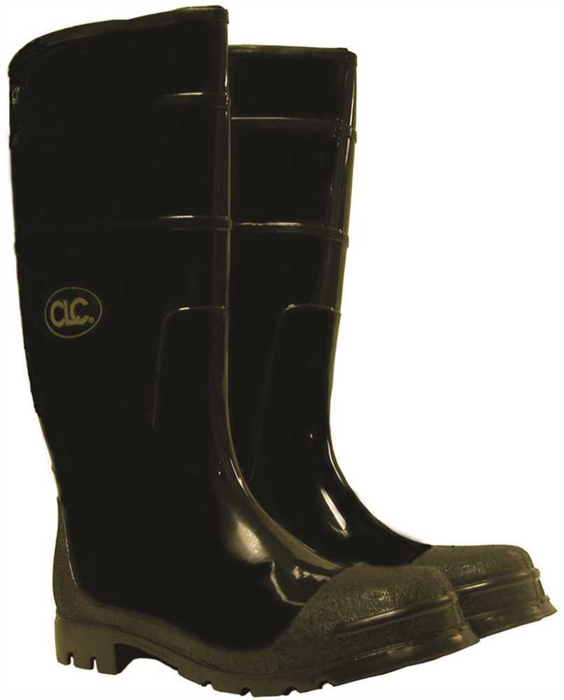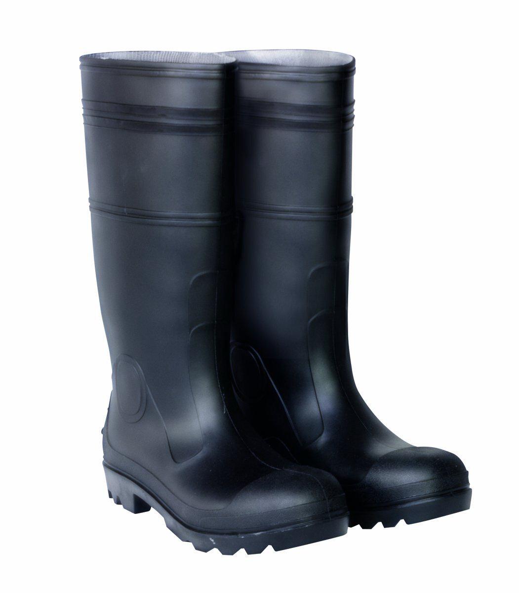 These standard black PVC rain boots have a durable cleated sole for improved traction and are sized to be worn with your thick socks.