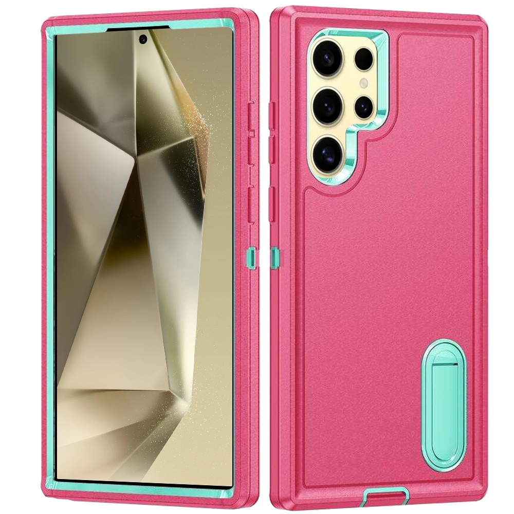 Phone Case for Galaxy S24 Ultra Shockproof 3in1 Toughest Full Body Protective Stand Anti-Slip Slim Hard Cell Phone Cases with Kickstand Scratch Resistant Armor Design Tough Defender Hybrid Phone Cover
