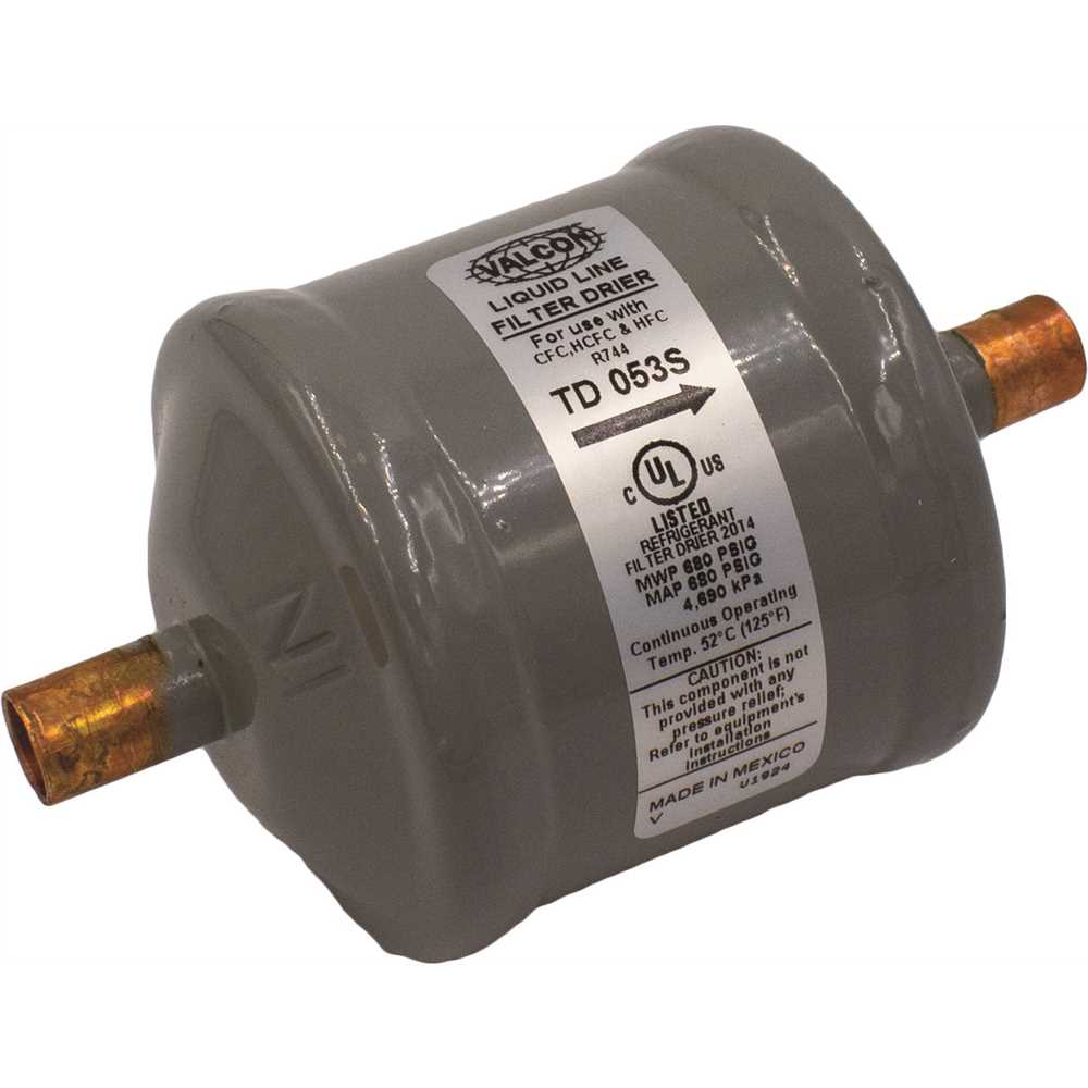 Liquid Line Solid Core Filter Drier. 3 in. ODF, 6.22 in. x 2.5 in. Flow Capacity (ARI Standard 710.86) Tons at 1 psi Delta P Refrigerant 134A=4.4, R-22=4.8, R410A=4.9, R-404A/R507=3.2. Economical system protection for residential air. conditioning ODF - solid copper connections for easy installation Solid core construction with 40 micron filtration Maximum working pressure = 680 psi For use with CFC, HCFC, and HFC refrigerants.