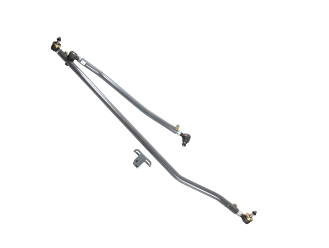 Drag Link is bent to clear factory axle brackets and is compatible from stock to 4" lifted vehicles. (Vehicles over 4" of lift will require a drop pitman arm for compatibility)