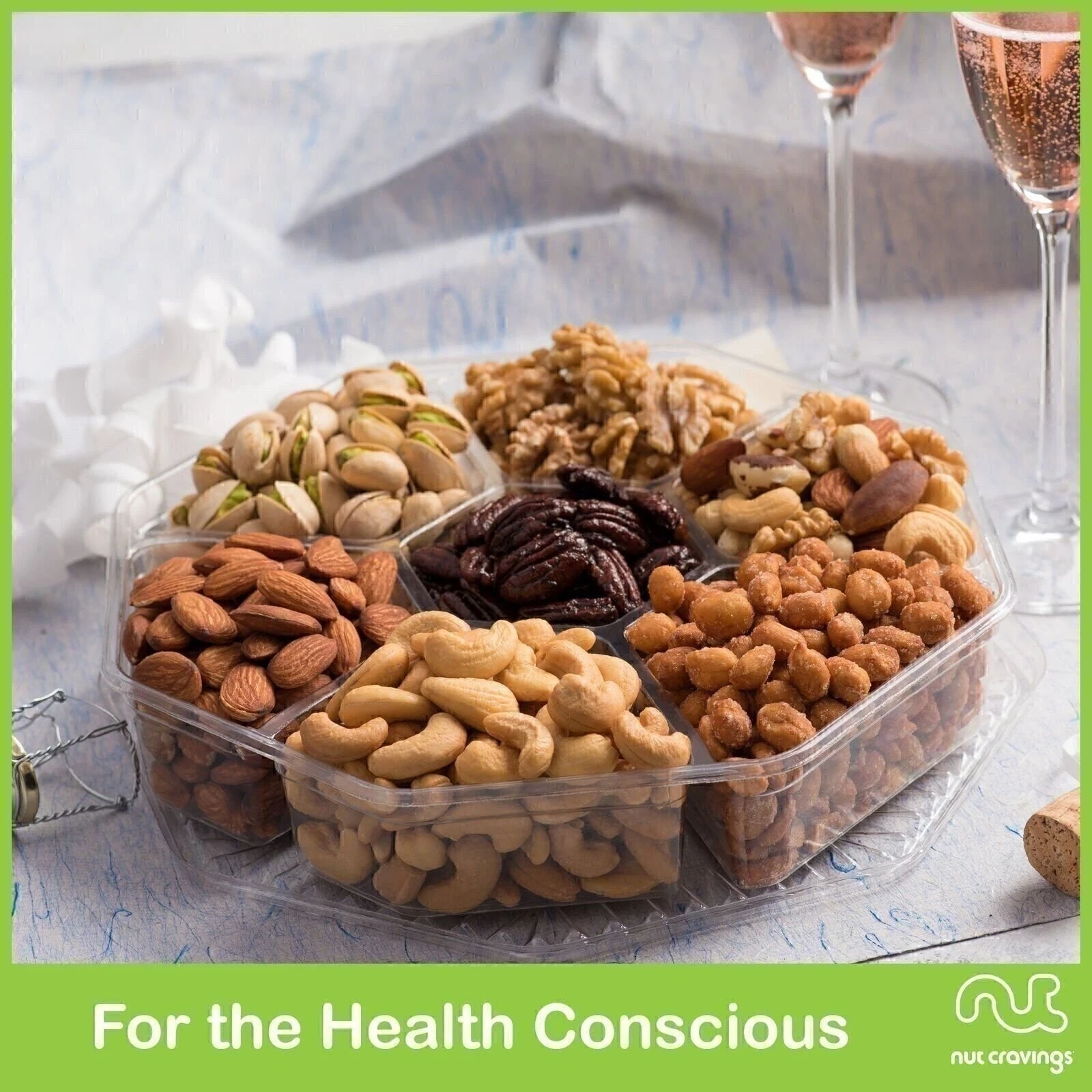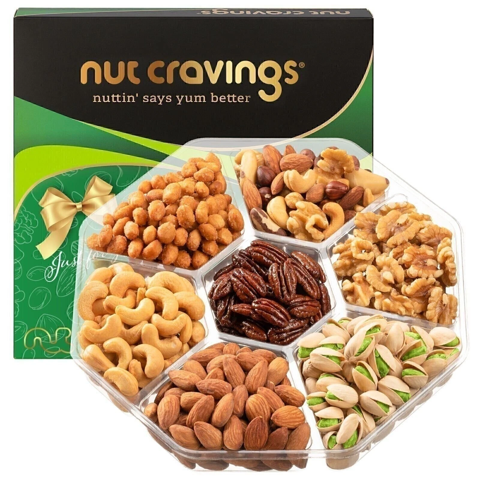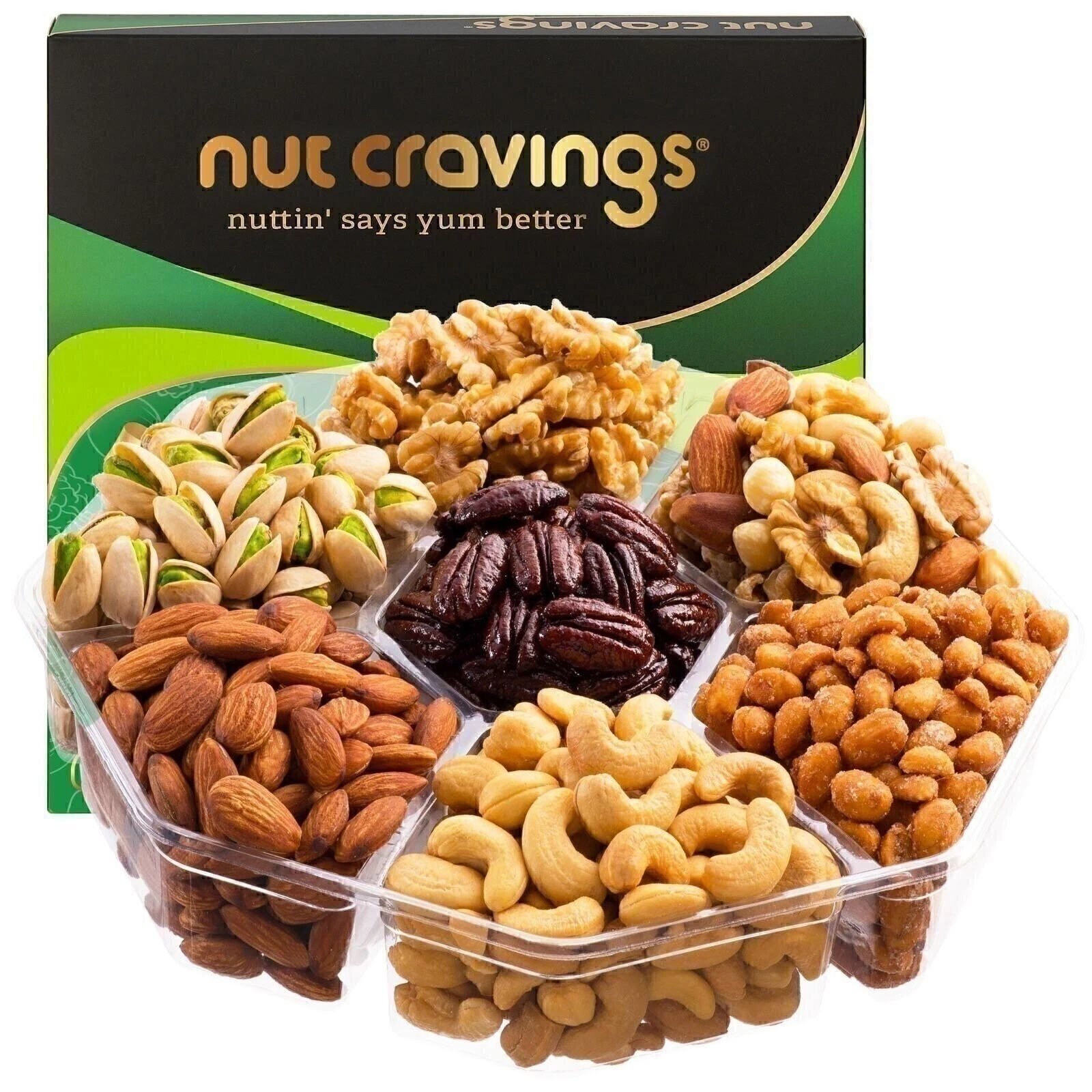 Includes: Almonds, Honey Glazed Peanuts, Cashews, Pistachios