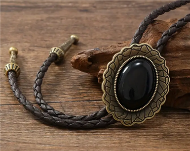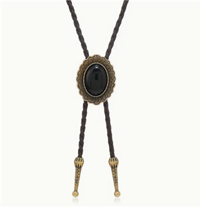 BRAND NEW BLACK ONYX BOLO TIE, THE LOGO IS 1.1/2 Inches (3.81 cm) X 1 Inches (2.54 cm) Aprox. The long of the rope for the bolo is 40" Inches ( 101.6 cm) Aprox. The ropo for the bolo tie is made of real leather, not PU imitate leather.