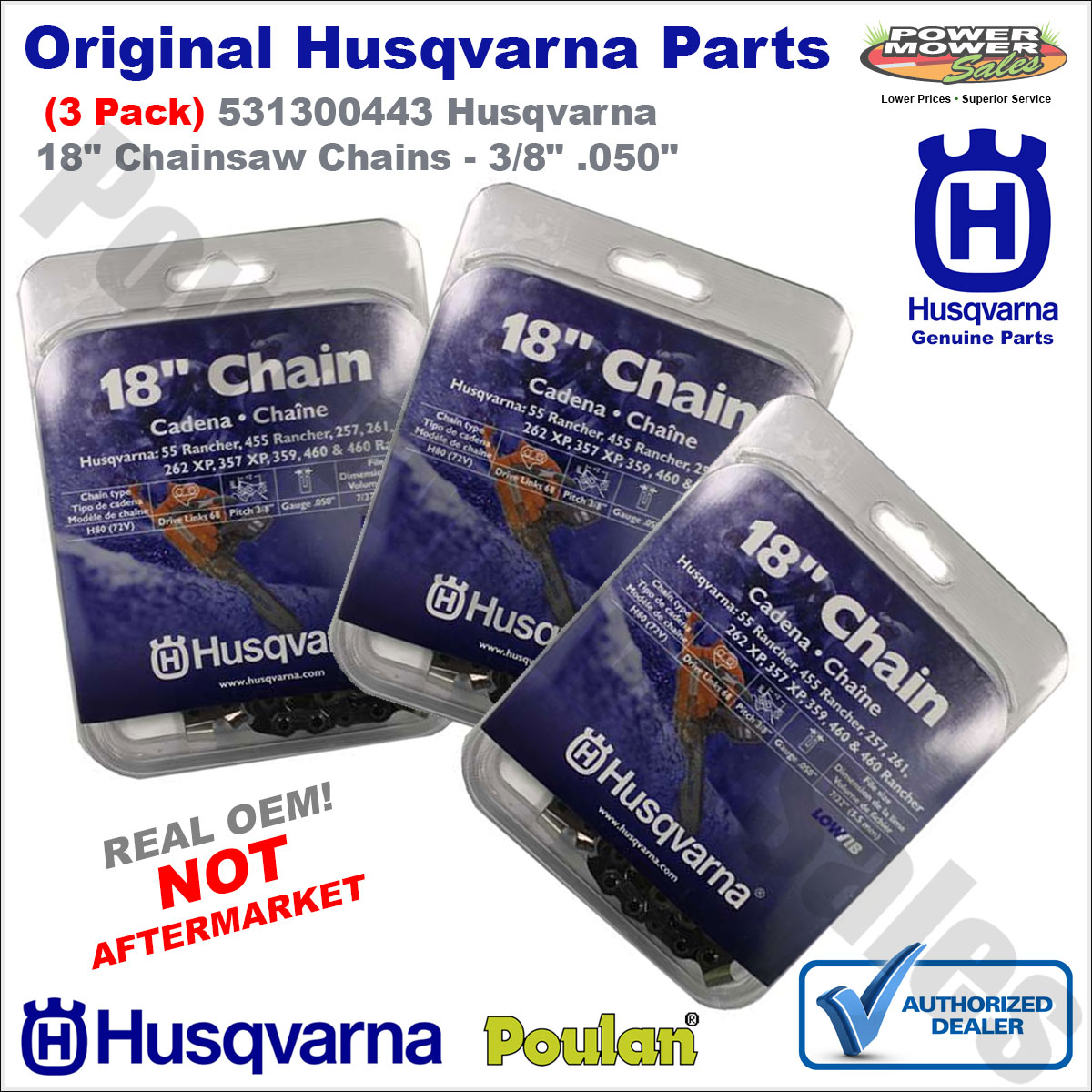 •Ê Listing is for 3 Genuine Husqvarna 18" Chainsaw Chains