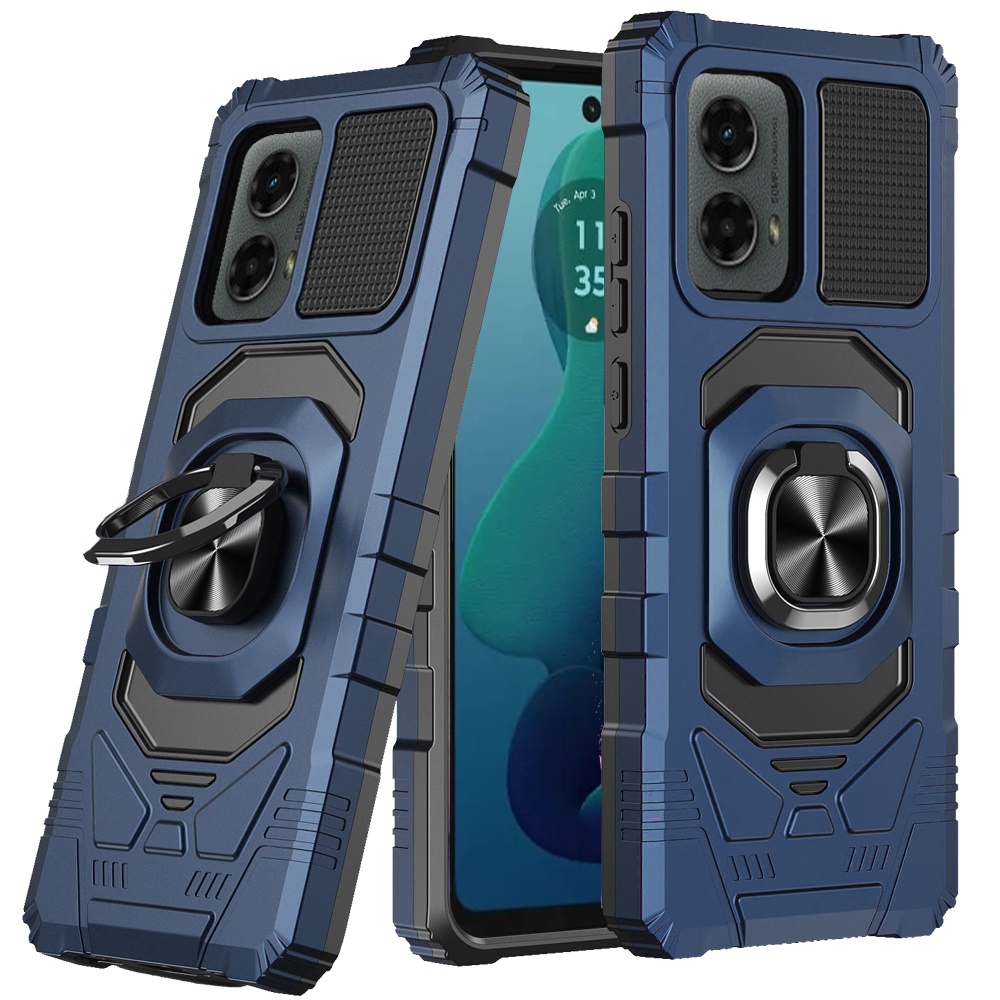 Phone Case for Motorola Moto G 5G (2024) Premium Tuff Hybrid Tough Ring Holder Kickstand Heavy Duty Hybrid Support Magnetic Stand Military Grade Shockproof Protection Hard Case [Magnetic Car Mount Holder Not Included]