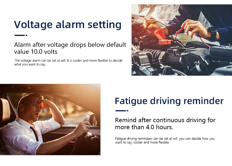 4. Over-time driving Alarm, Low Voltage Alarm, Over-speed Alarm, High temperature Alarm, Fatigue driving reminder