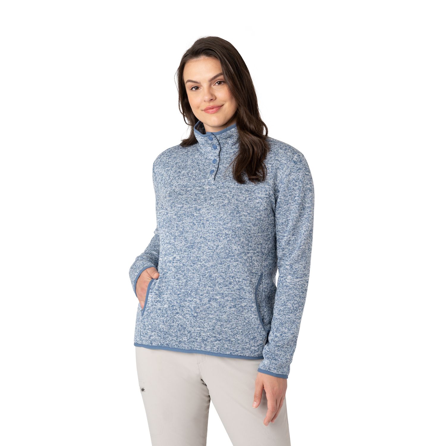 Cozy fall style is yours in this women's Eddie Bauer mockneck fleece sweatshirt. Cozy fall style is yours in this women's Eddie Bauer mockneck fleece sweatshirt. Anti-pilling finish for lasting wear Mockneck with snap closure Long sleeves Fleece constructionFABRIC & CARE Polyester Machine wash Imported Size: Small. Color: Light Blue. Gender: female. Age Group: adult.