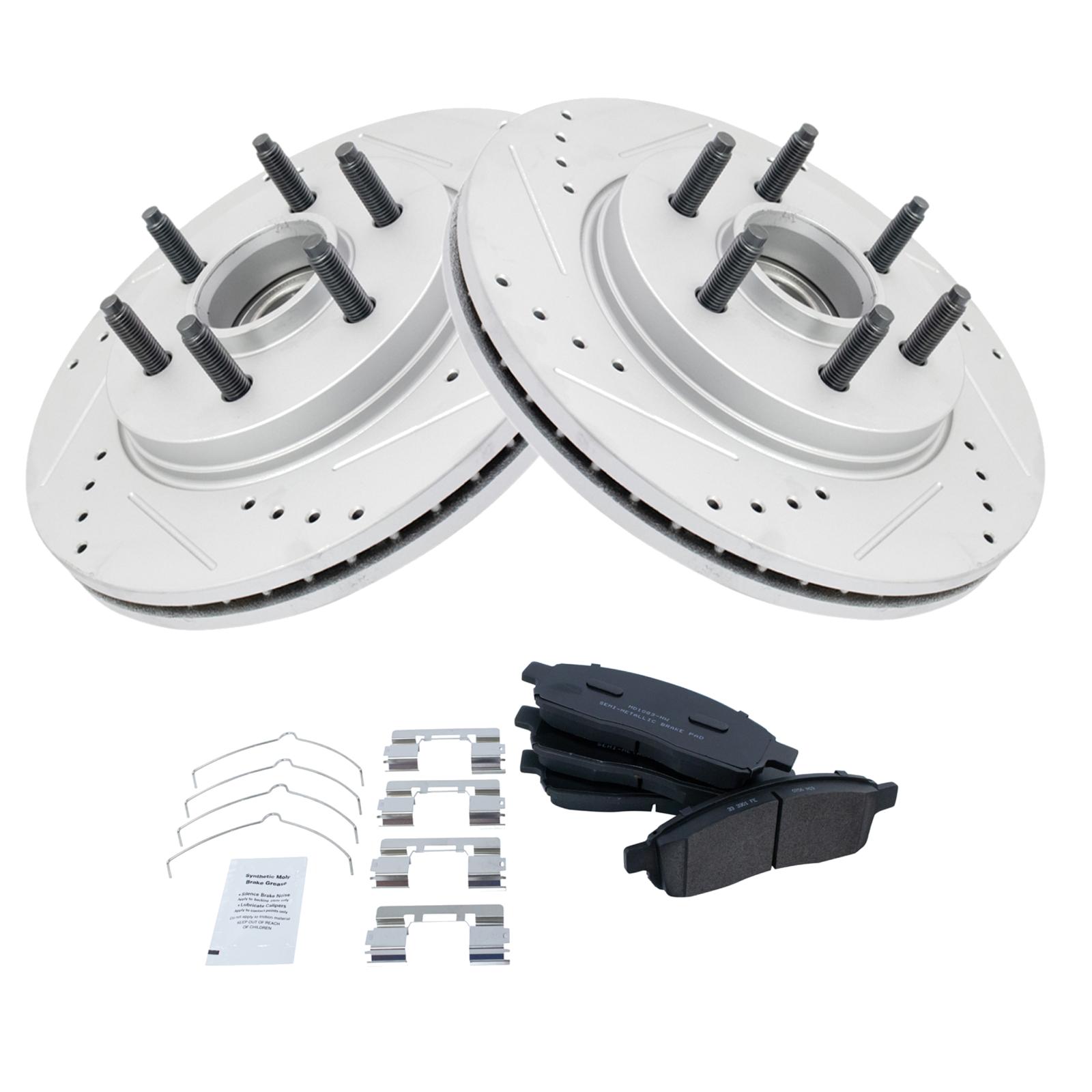 Kit Includes:(2) Front Performance Brake Rotors, Kit Includes:(1) Front Semi-Metallic Brake Pad Set with Contact Point Grease & Hardware