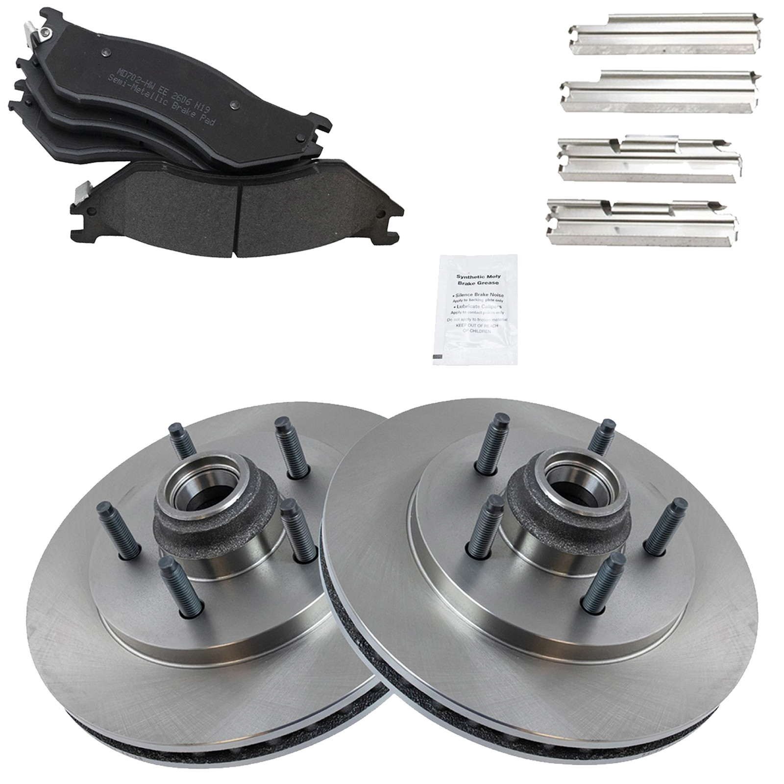 Kit Includes:(1) Front Semi-Metallic Brake Pad Set with Contact Point Grease & Hardware, Kit Includes:(2) Front Brake Rotors