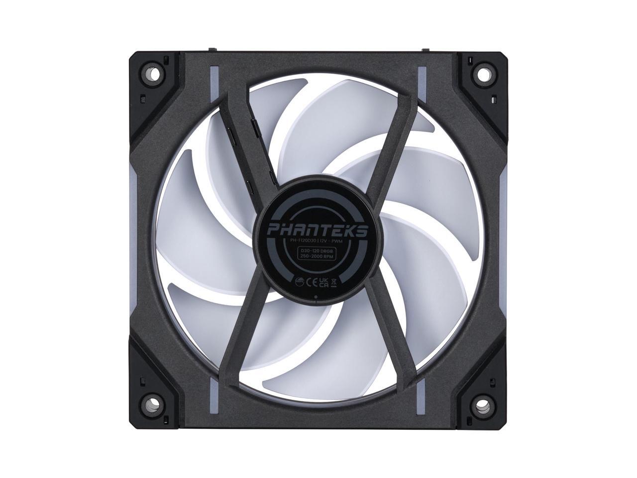 Phanteks D30-120 DRGB PWM FAN, Premium D-RGB Performance Fan, ARGB/DRGB lighting, Daisy-chain Fan Linking system, Black